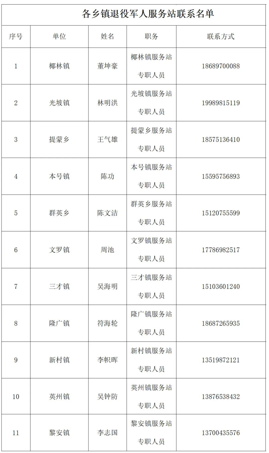 七、附各乡镇负责人联系表