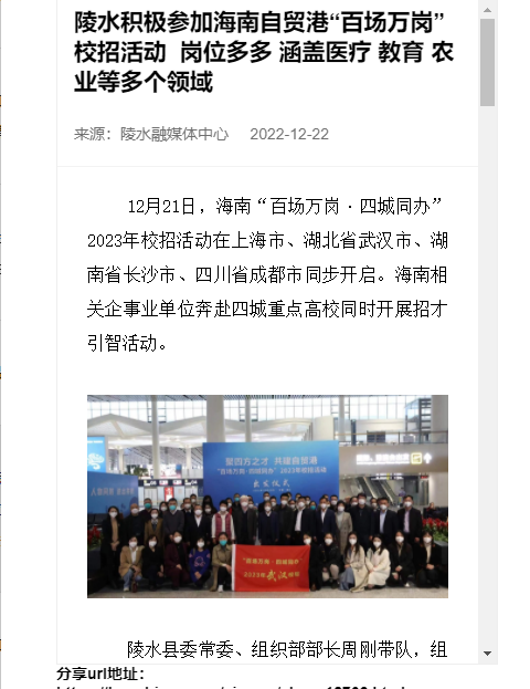 联合陵水多部门,结合医疗卫生、人才引进、慰问工作、教育、养老、就业等方面进行报道,积极联动省级媒体通过电视、广播、新媒体平台采取新闻采访和直播连线的形式报道高考相关工作,《陵水积极参加海南自贸港“百场万岗”校招活动 岗位多多 涵盖医疗 教育 农业等多个领域》《陵水:搭建求职就业和企业用工“供需桥”》《陵水农信联社志愿者谢南雁救助被蛇咬伤老人,传播抗议正能量》等新闻宣传广获好评,通过推动新闻信息与政务、民生服务等紧密结合,在全媒体时代更好发挥“上连党心、下接民心”的桥梁纽带作用。