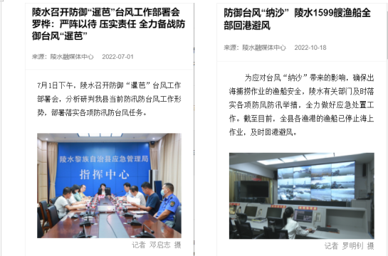 2022年下半年台风多发季,为保护人民生命财产安全,报道《陵水召开防御“暹芭”台风工作部署会 罗烨:严阵以待 压实责任 全力备战防御台风“暹芭”》《防御台风“纳沙”陵水1599艘渔船全部回港避风》等新闻,分析研判防汛防台工作形势,展现媒体的责任和担当。