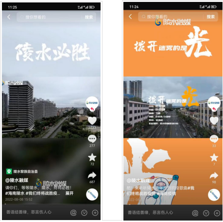 陵水融媒抖音号(2022年8月8日、2022年8月13日)