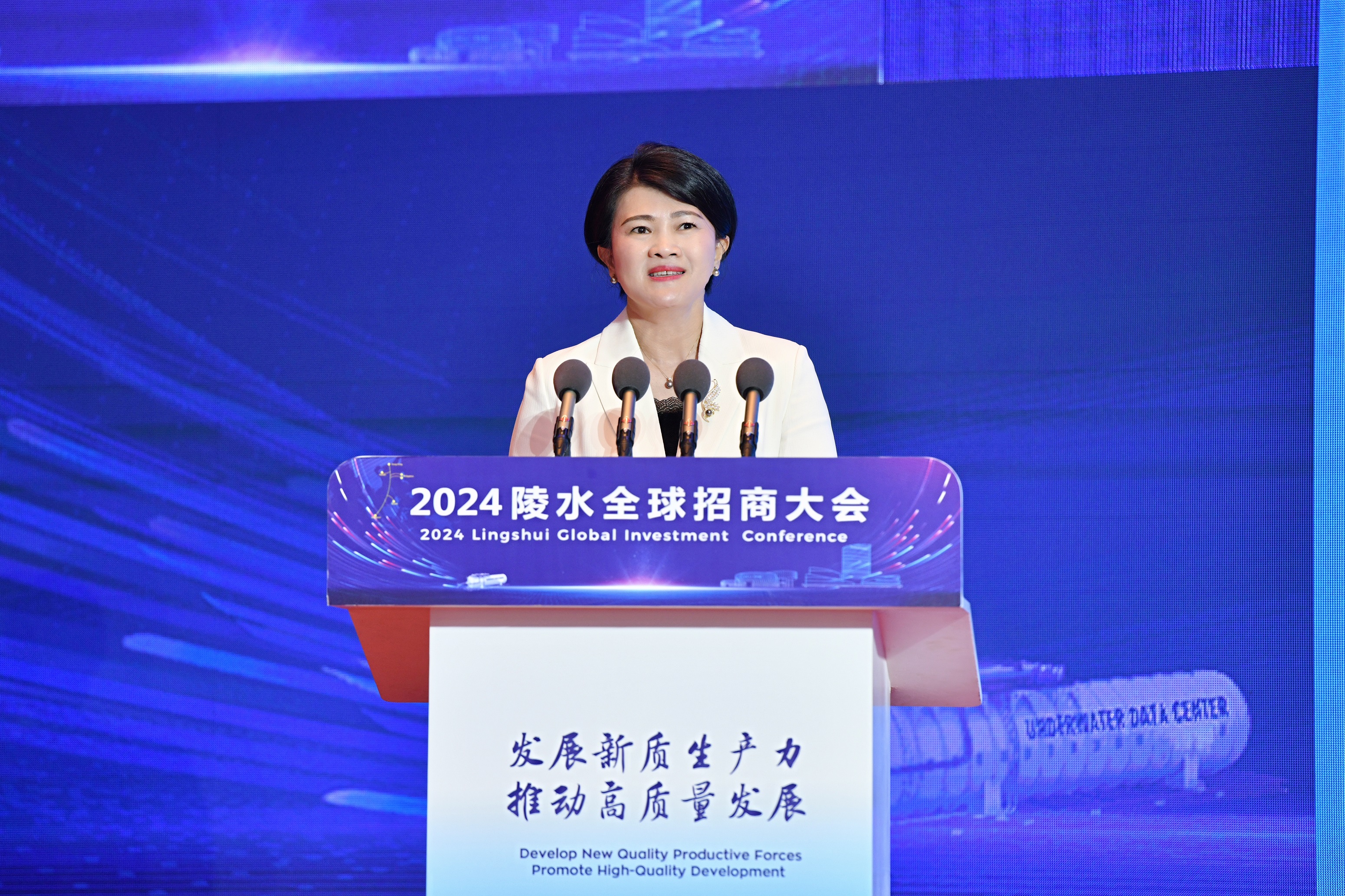 4月16日,陵水黎族自治县在海南海口国宾馆举办以“发展新质生产力 推动高质量发展”为主题的全球招商大会。省民政厅副厅长石清理、县委书记吴海峰分别作致辞,县委副书记、县长罗桦作招商推介。