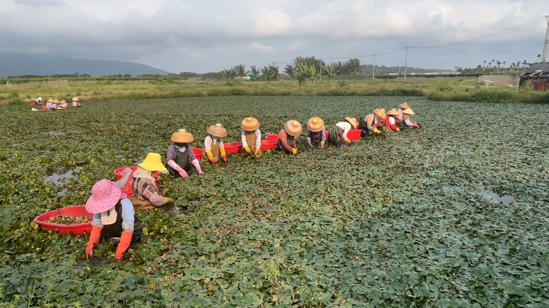近日,陵水光坡镇岭门居140多亩菱角喜获丰收,农户正忙着采摘上市。