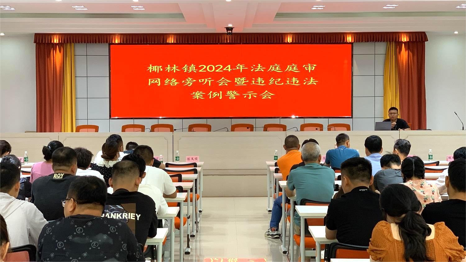5月6日下午,椰林镇组织全镇80多名干部职工在镇政府会议室召开2024年法庭庭审网络旁听会暨违纪违法案例警示会。加大法治宣传教育,敲响廉洁自律警钟。