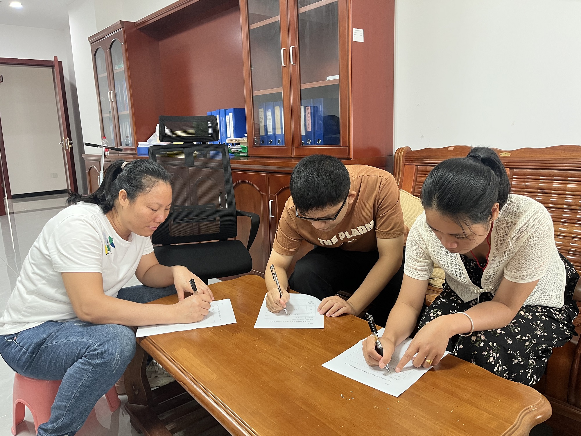 记者在首届酸粉行业技能竞赛线下报名处看到,县总工会工作人员正在指导前来报名的市民群众、商家填写报名表。