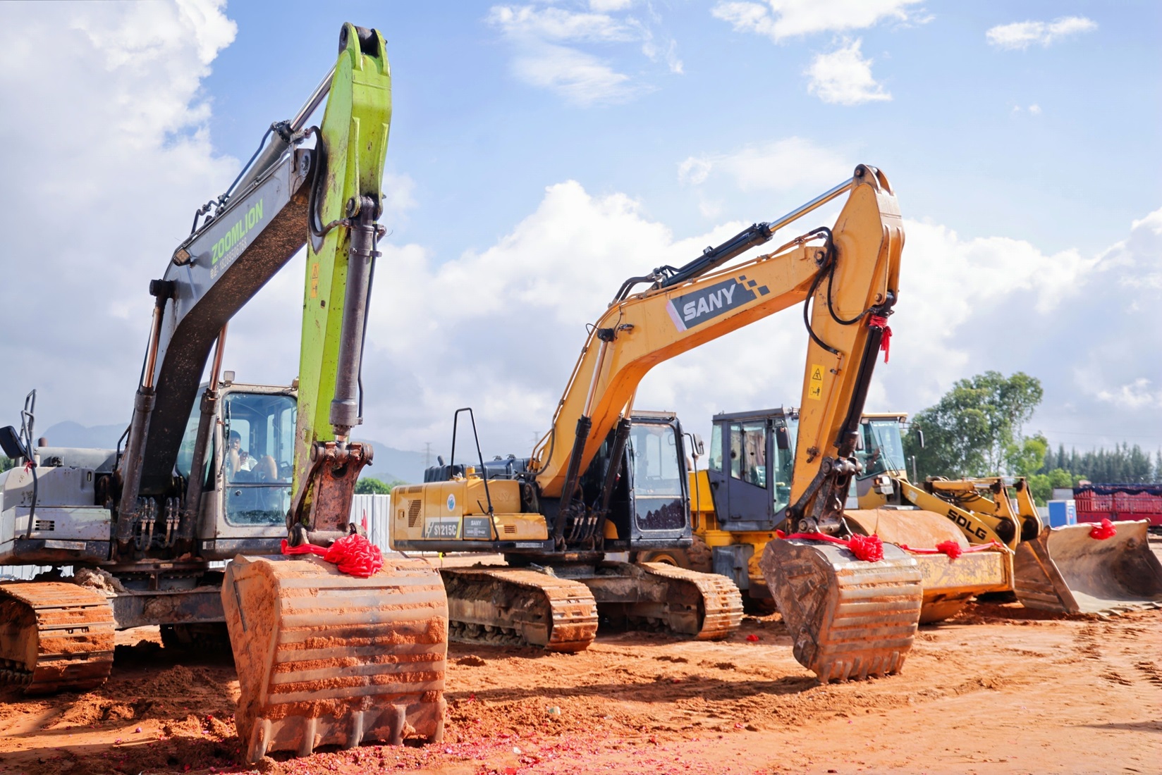 在项目开工现场,相关公司和企业代表为集梦体育公园项目培土奠基。