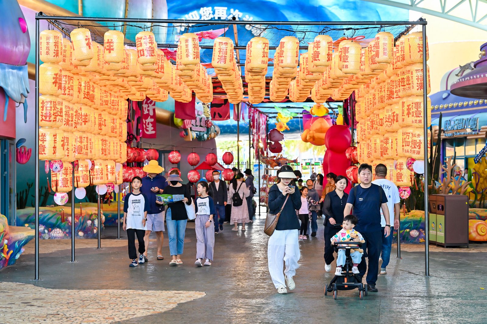 南北大集更是汇聚了天南地北、琳琅满目的珍馐美馔,让游客尽情畅享饕餮盛宴。游客还可参与“画蛇添福”活动,在沉浸式游戏摊位感受互动乐趣,漫步烟花小铺、手提鱼灯,或是探索海洋纪念品店,在游玩过程中深度领略中国传统文化的博大精深、源远流长。