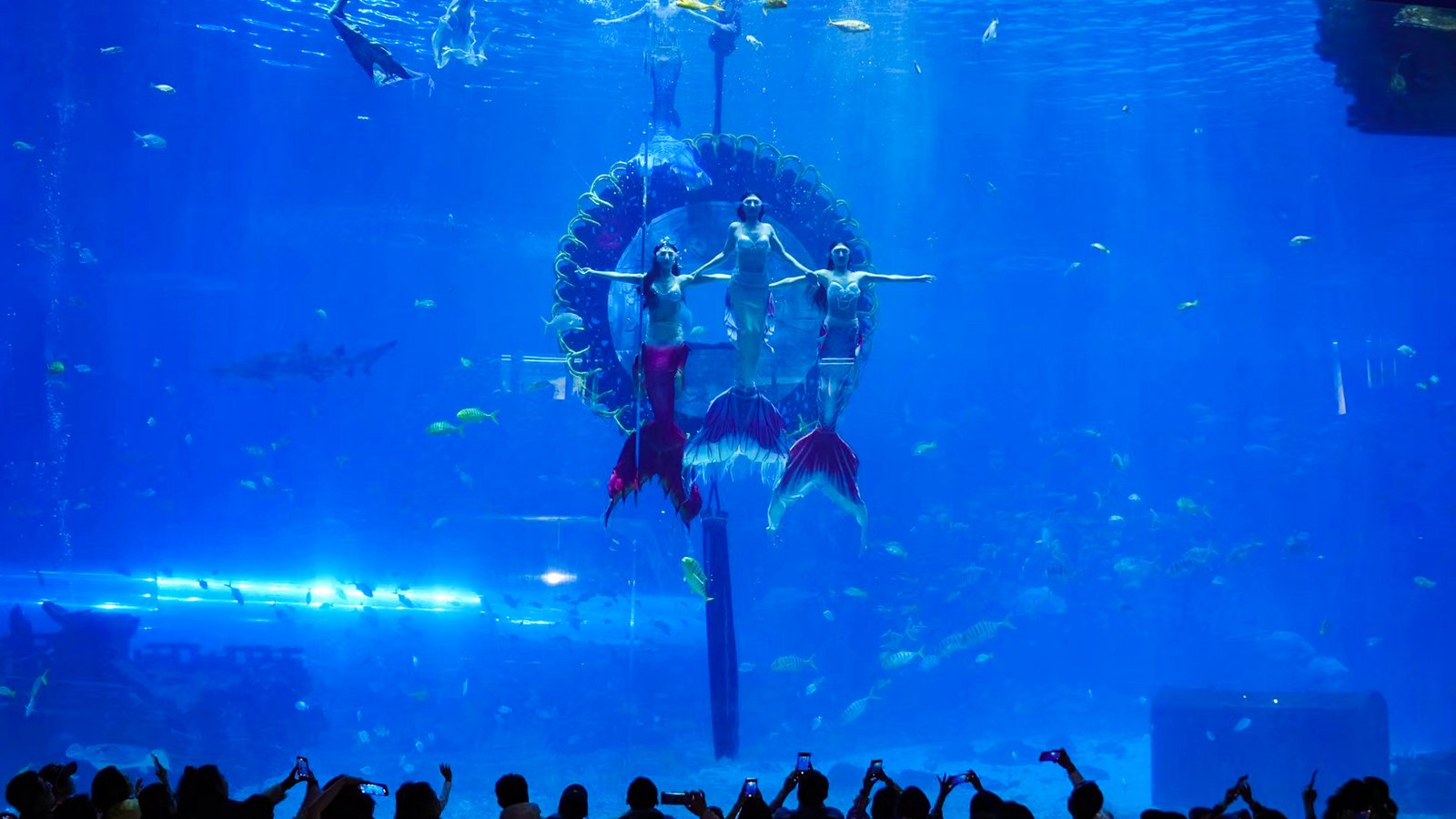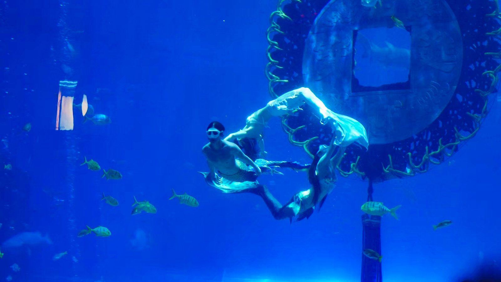 南海秘境馆内,园区匠心独运地运用水下造景技术,精心塑造出蕴含浓郁传统气息的中国结与铜钱造型,水下舞蹈演员化身灵动金蛇,演绎震撼人心的金蛇狂舞水下大秀,为游客带来别具一格的沉浸式海洋绮丽秀,送上“六时吉祥,诸事顺遂,乙巳蛇年,时运亨通”的蛇年祝福。