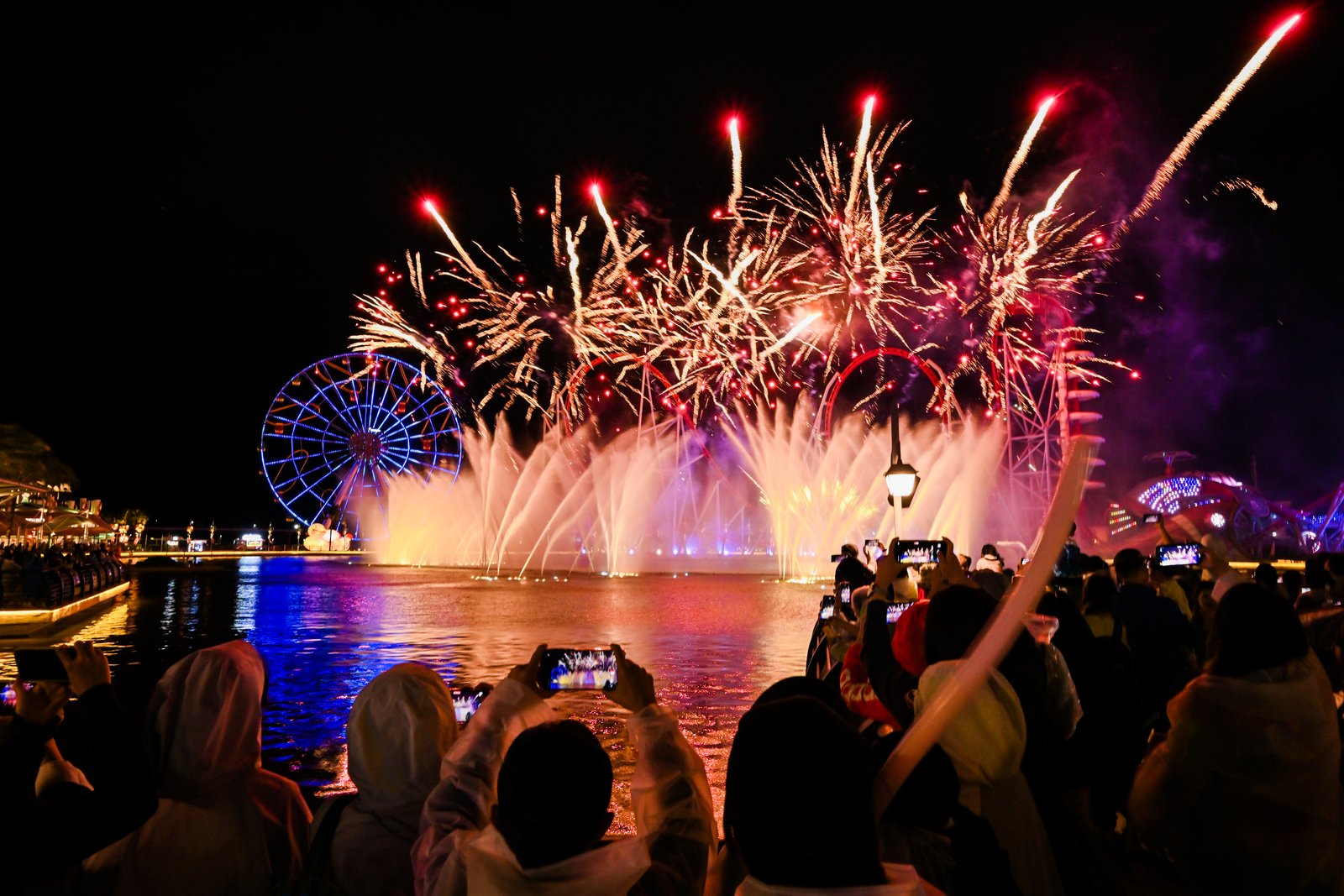 夜幕降临,南海之畔准时拉开金蛇烟火大会的华丽帷幕。烟花、金曲震撼舞台秀带动现场氛围,DJ环节激情四溢,更有礼物互动惊喜连连。春节特别版烟花在时长与绚烂程度上双双升级,盛大的烟花盛宴在夜空中夺目绽放,其光影交织、色彩斑斓,为游客带来无与伦比的视听盛宴。
