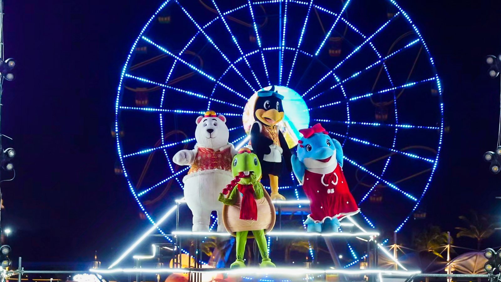 活动首日,最引人注目的当属新春限定十二生肖NPC天团,帅气现身在快闪活动以及日夜巡游的队伍当中,与游客们合影留念、互动游戏,为新春增添诸多甜蜜瞬间与意外惊喜。日夜加场特色巡游,各种色彩斑斓的花车、身着华丽服饰的演员以及欢快的音乐交织在一起,将海洋元素以及传统文化元素巧妙融合,为游客们呈现了一个如梦如幻的海底世界。