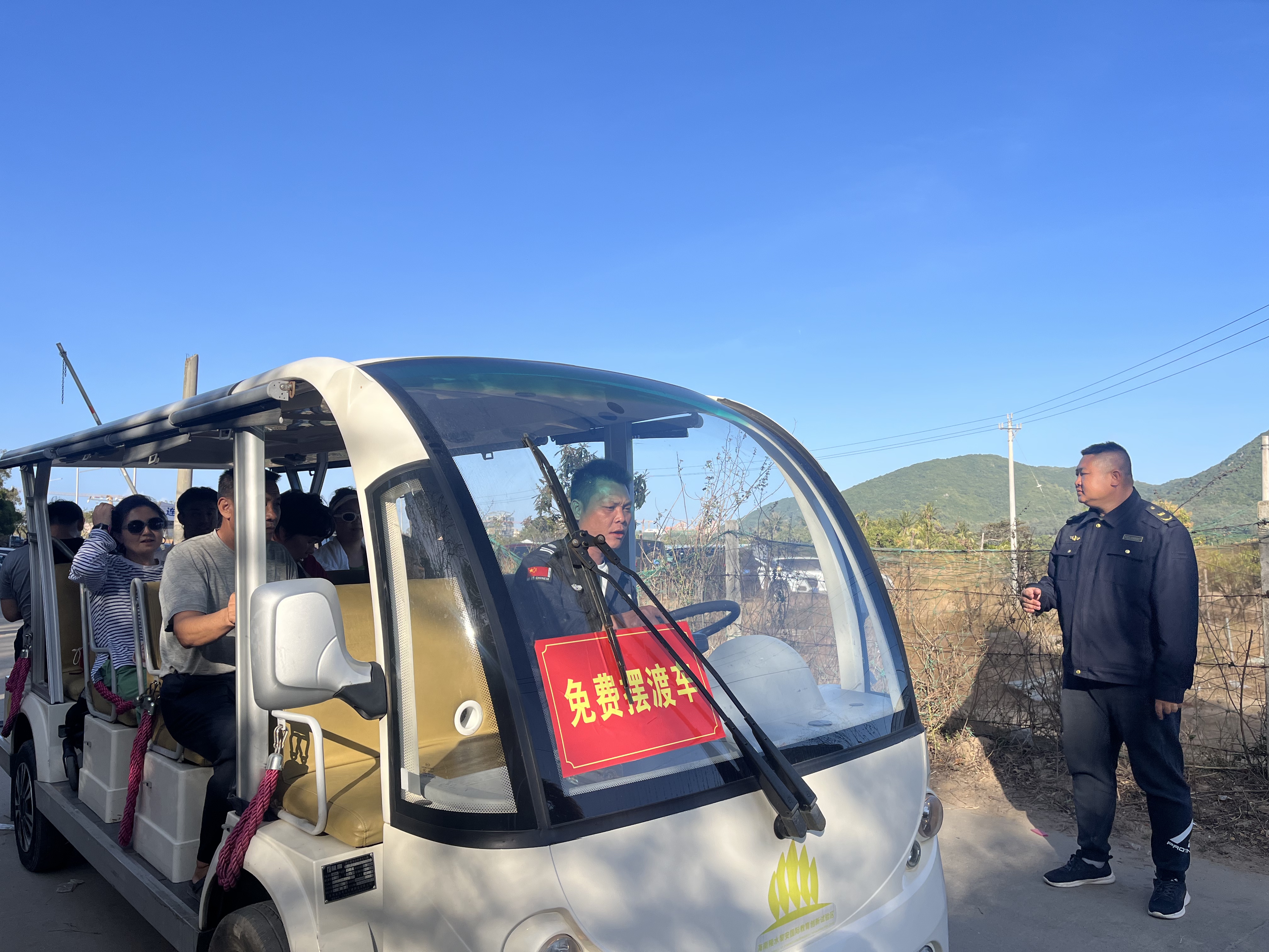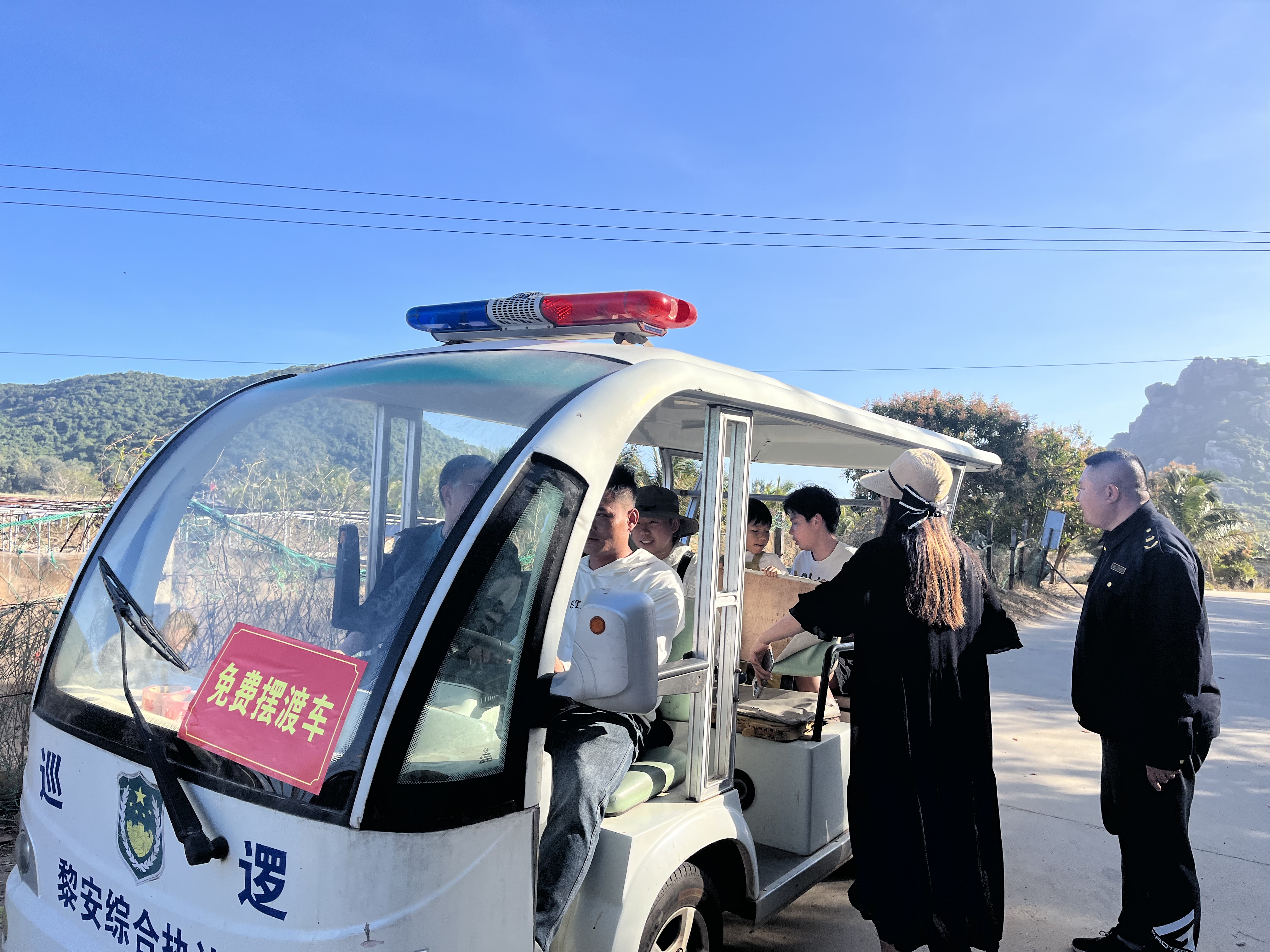 春节期间,黎安镇每天出动100人次,设置6辆免费摆渡车和2个班次的免费摆渡车专线,为游客提供内外线接驳服务,让游客乘坐摆渡车后直达港门岭、尖岭等地游玩。