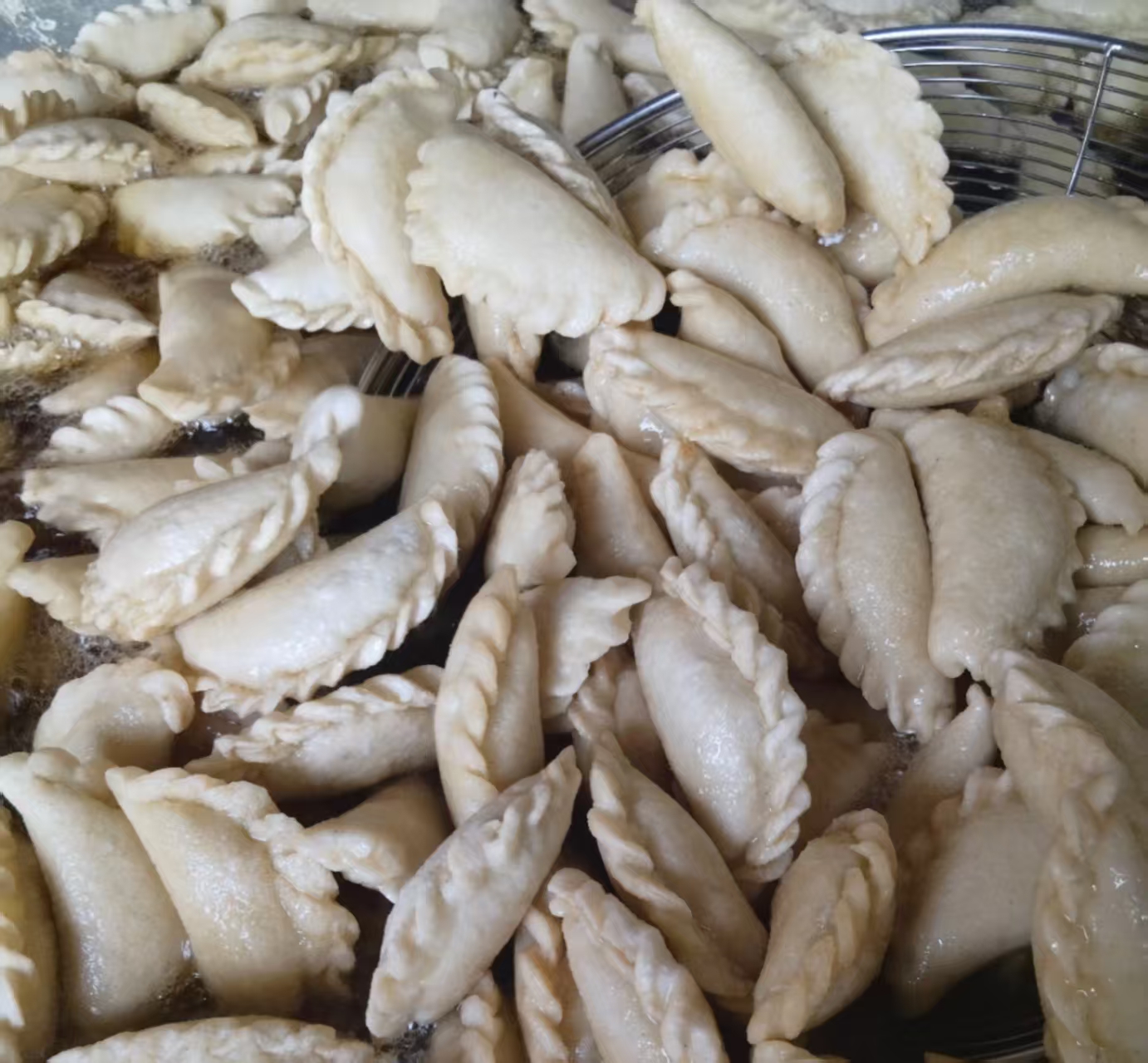 对我来说,酥角不仅是舌尖上的美味,更是心底里最深的牵挂,后来我在他乡求学工作,总心心念念那金黄的酥角,儿时一家人围坐着包酥角的场面,常常出现在我的梦里,我的记忆里,伴我走过春夏秋冬,慰藉我满怀的乡愁。不知不觉间,我们都长大了,父亲刚离世那会儿,母亲年年都打电话叫我们回去包酥角,然而因为母亲的年迈,姐姐的出嫁,我们几个随着年龄增长也逐渐聚少离多,我们再也没有自己做酥角了。我也不愿意吃在市场里面出售的酥角,也许是在避免破坏我记忆里有关酥角的美好。母亲常说:“天上圆月,人间小月,一年喜团圆。”,圆满或许对很多人来说轻而易举的,然而对于我来说,一些遗憾,一些缺失的情感总是令我无所适从,我不知道怎样才能再重温美好的寻常,唯愿时光再慢一些就好了……