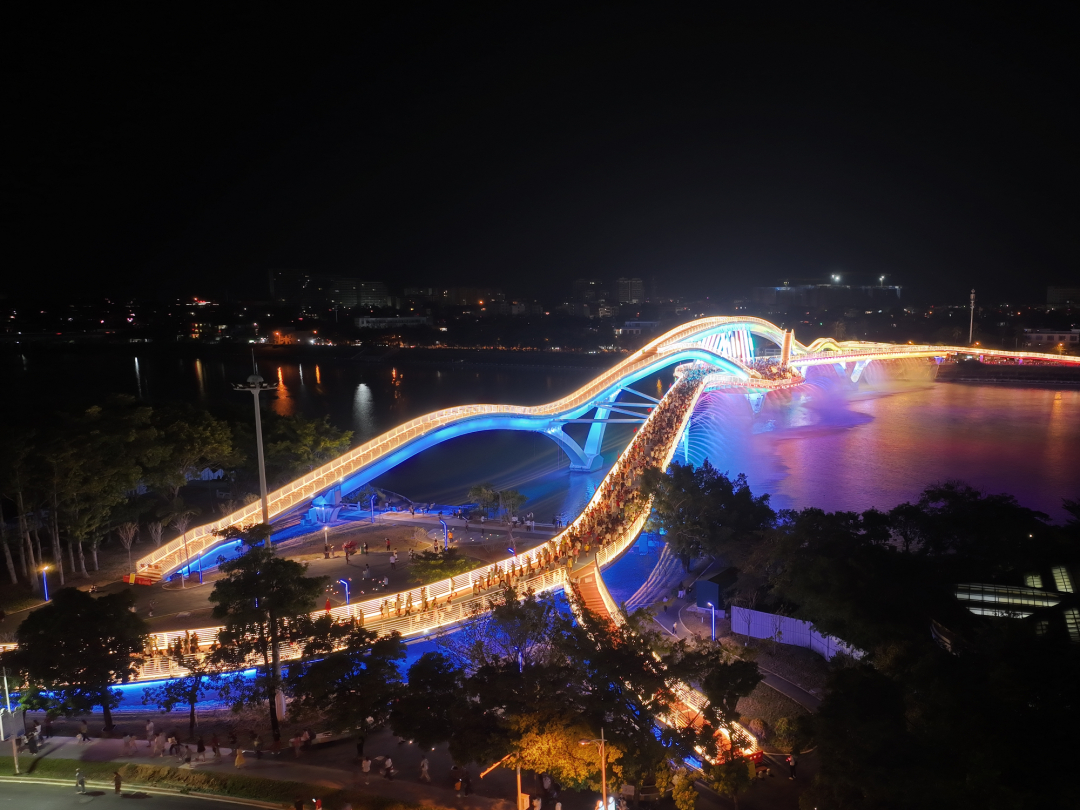 为了表达对知音桥的热爱与敬仰,这位游客还亲自创作了《知音桥序》。序文中,他以生动的笔触描绘了知音桥的巍峨壮观与陵水的美丽繁荣,将知音桥比作横跨清波的巨龙,赞美其为陵水增添的新景与海南的胜迹。同时,他也提到了知音桥上的音乐喷泉、灯光秀以及舞台表演等文化活动,让游人流连忘返。序文的结尾,他深情地表达了对知音桥长存与陵水之美永传的祝愿。