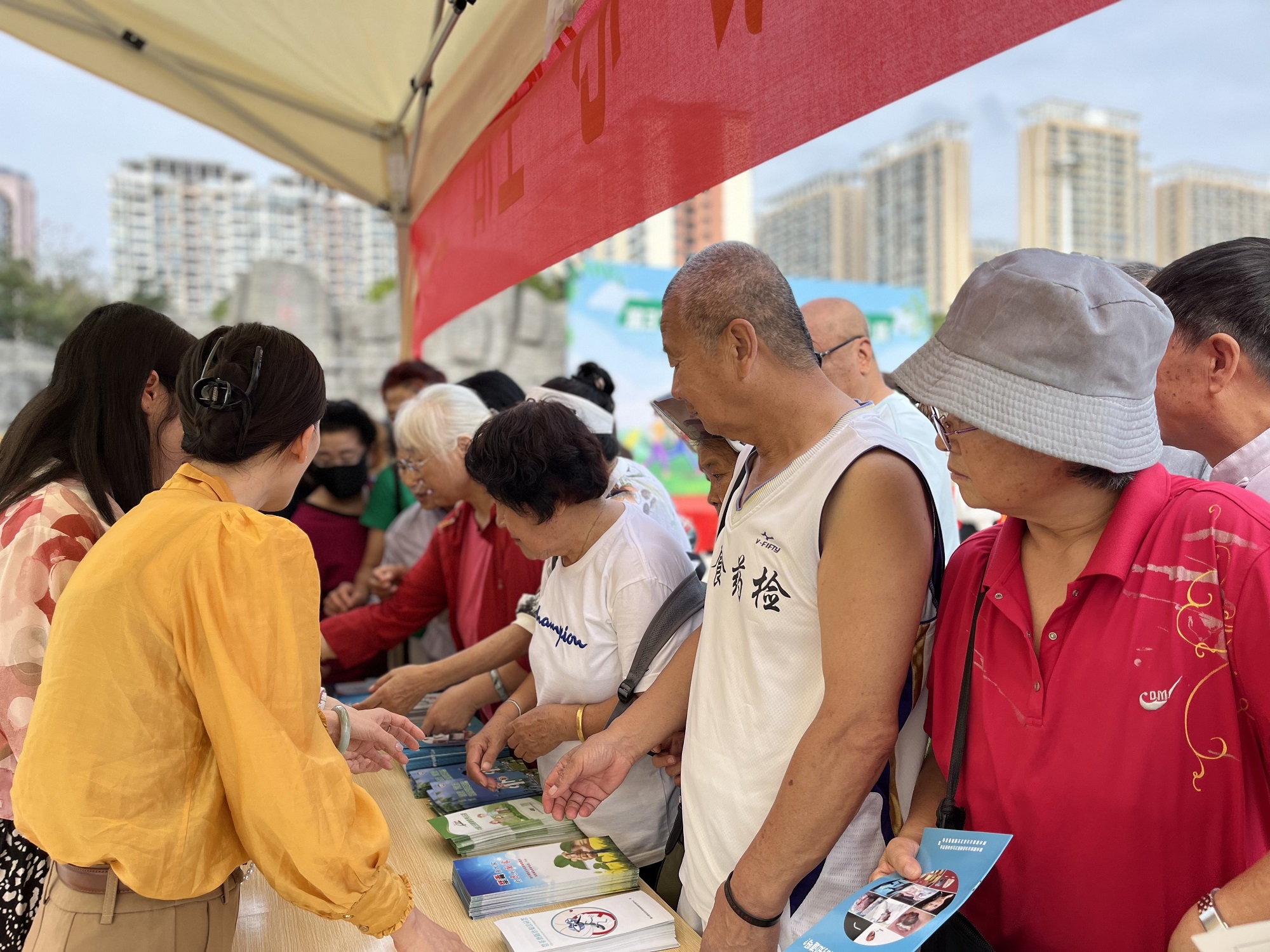 在启动仪式现场,来自县人民医院、县中医院的医护人员还为市民群众开展义诊活动。县卫健委、县爱卫办工作人员向群众发放各类健康知识手册、折页,普及健康知识。