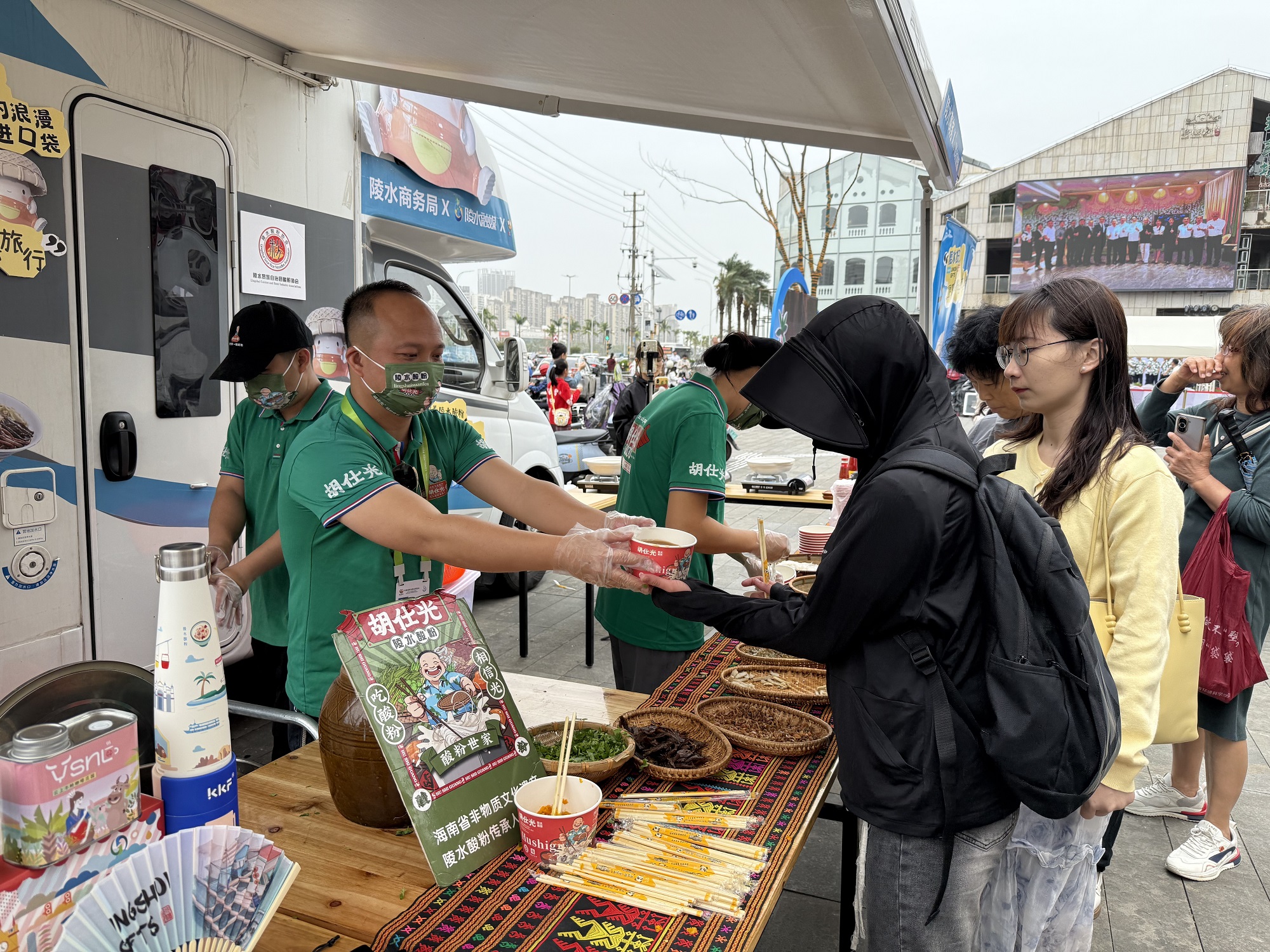 4月13日,由陵水县商务局主办,陵水融媒体中心协办的“陵水好礼—跟着酸粉去旅行”暨中国国际消费品博览会专场在海口精彩亮相。活动现场以免费“嗦粉”和陵水好礼文创产品展示等方式,吸引众多市民游客踊跃参与,用一碗酸粉开启消博会“味蕾盛宴”。