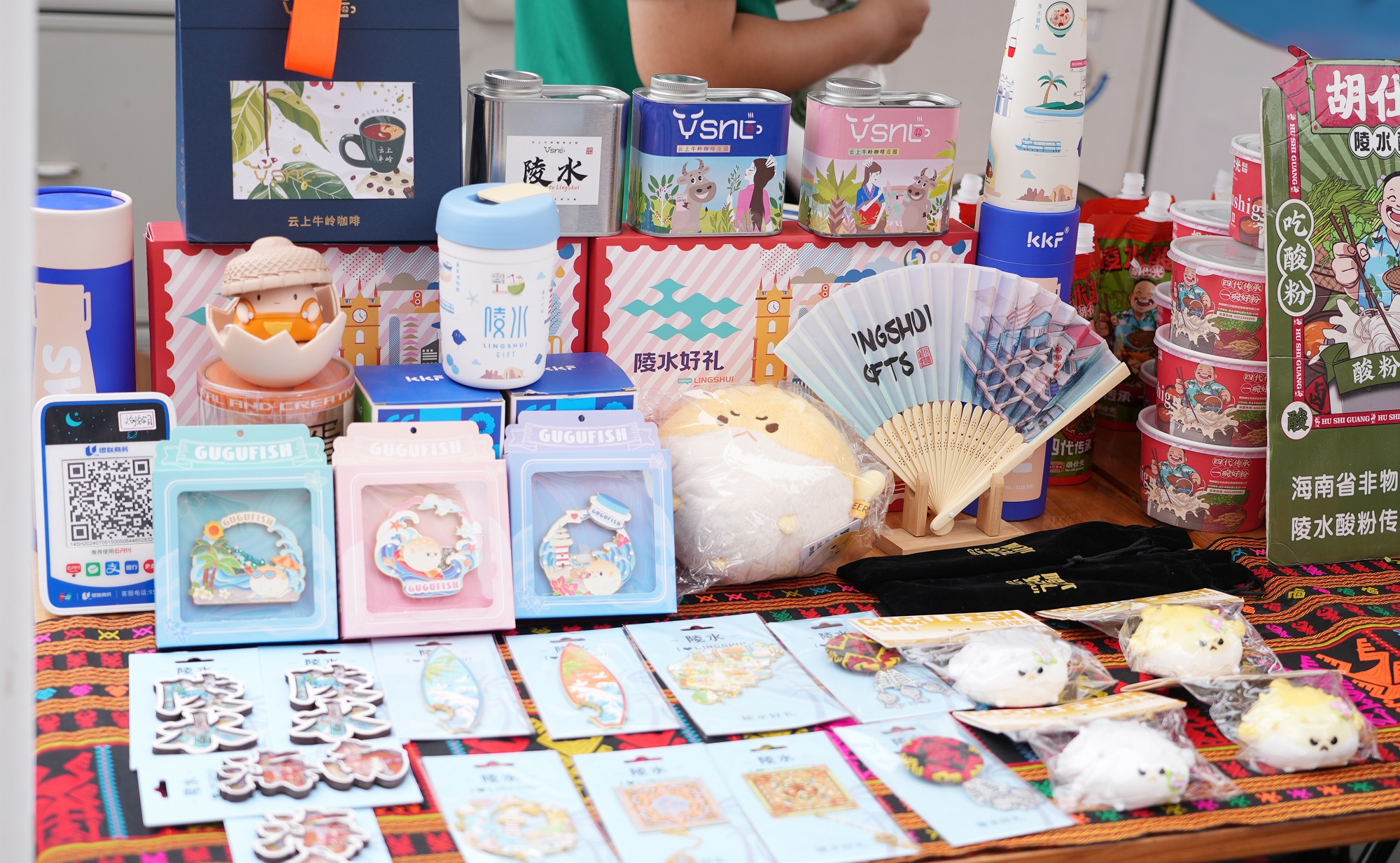 陵水好礼展示区也吸引游客纷纷驻足。展区错落有致地陈列着以陵水特色文化为创作灵感的系列文创作品。其中,新东方创始人俞敏洪推荐的爆款插播“气鼓鱼”系列家族,凭借巧妙的设计和萌趣的风格成为展区焦点,吸引众多亲子家庭驻足体验。此外,融合椰风海韵、黎苗风情的“陵水好礼”随身杯系列,将分界洲岛、清水湾自由灯塔、南湾猴岛等标志性景观巧妙展现于杯具之上,掀起购物热潮。而云上牛岭咖啡以浓郁风味吸引众多游客品尝,为这场文化美食盛宴增添了醇厚香气。游客们赞叹,这些文创产品兼具趣味、观赏与实用价值,承载着陵水的独特记忆。
