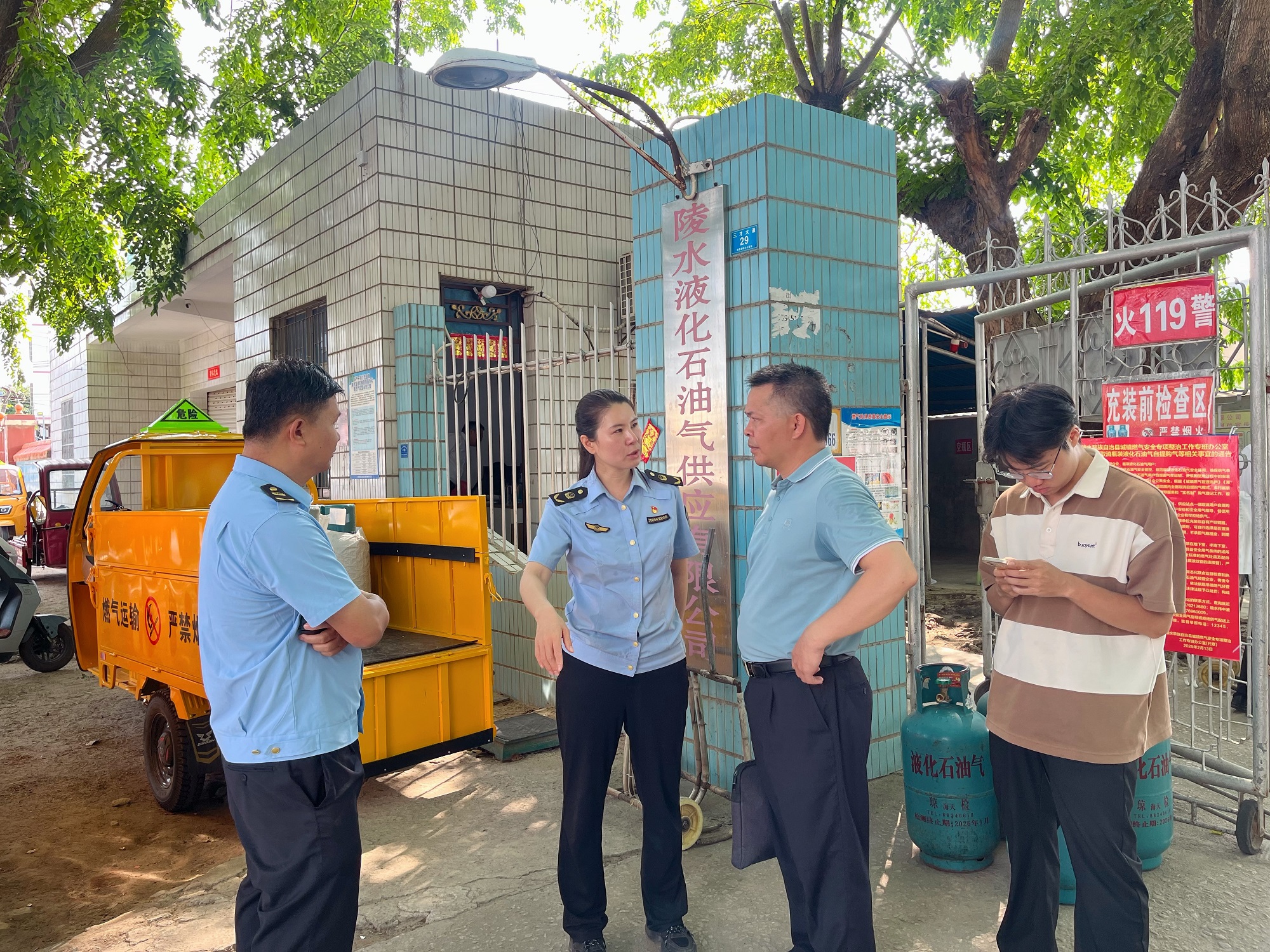 在陵水液化石油气有限公司,检查组一行通过实地检查、查阅台账、现场询问等方式对陵水液化石油气有限公司的燃气使用情况进行全面检查,重点查看燃气使用、燃气设施设备、燃气报警装置、应急预案等是否规范、完好、落实到位等情况。