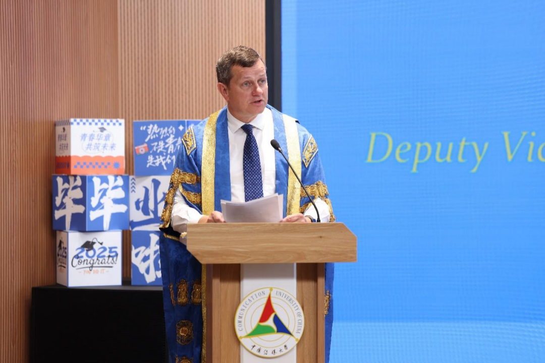 理查德·威尔斯在致辞中表示,毕业典礼不仅是学业成果的庆祝,更见证了两校深厚的合作情谊。他指出,当今世界复杂多变,唯有具备全球视野、跨文化理解力与协作精神的青年,才能应对挑战。他勉励毕业生发挥国际化教育赋予的优势,积极投身全球事务,为人类共同发展贡献力量。