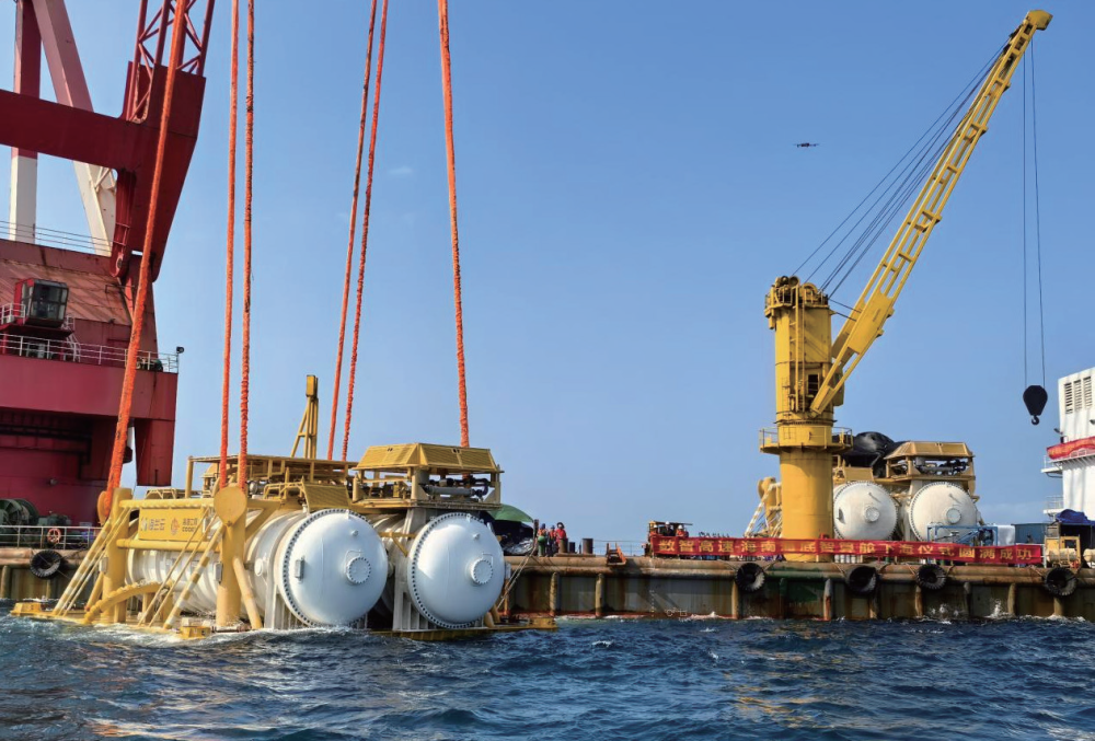 2025年2月18日,在海南陵水黎族自治县近海海域,海南海底智算舱下水瞬间(图片源自海南高速公路股份有限公司)