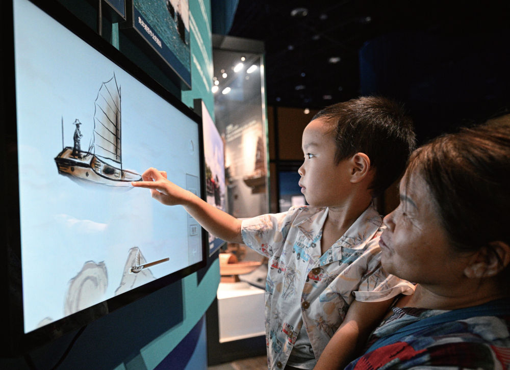 2025年5月13日,游客在位于陵水的海南疍家博物馆体验捕捞游戏,感受疍家人生产方式(蒲晓旭/摄)