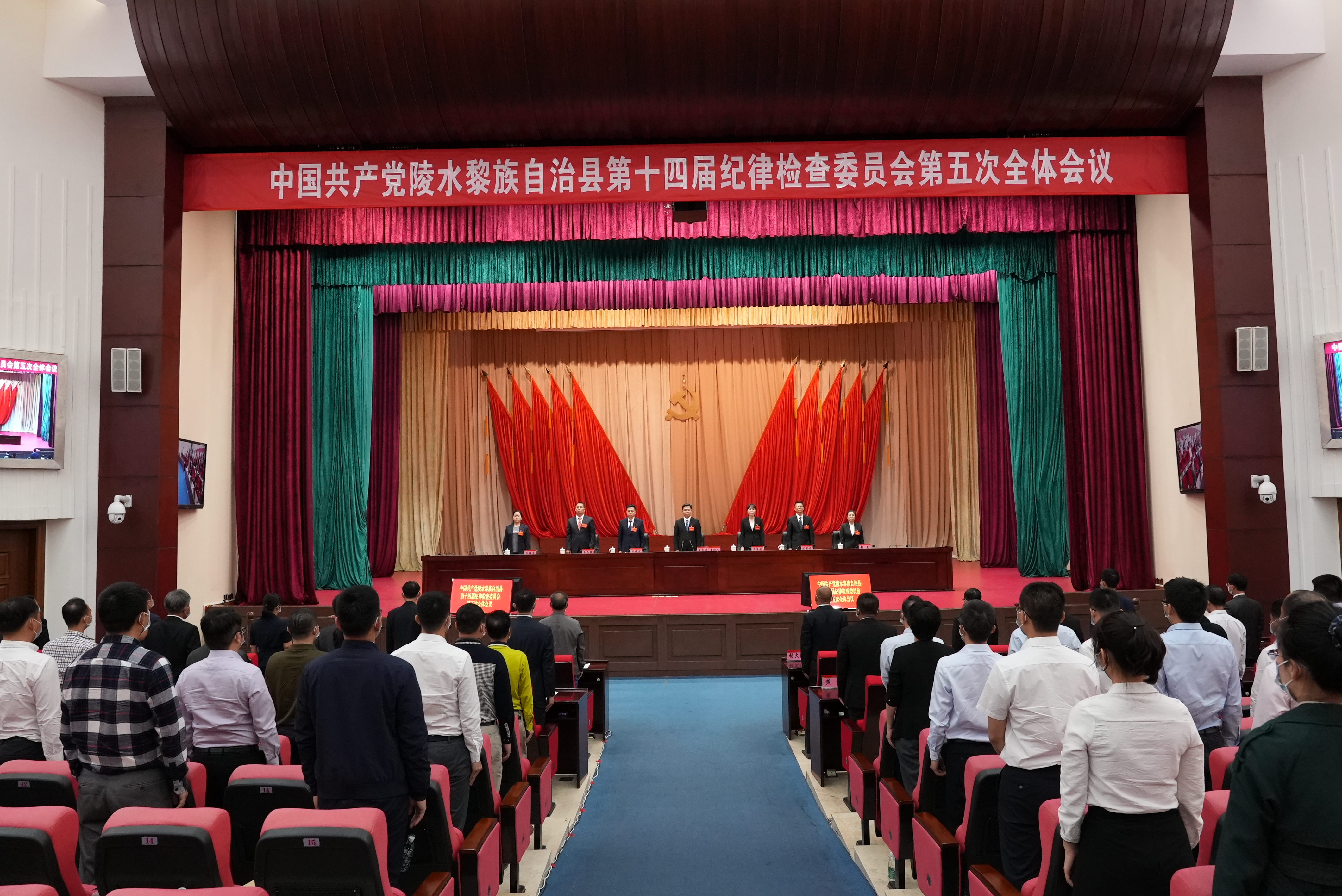 全会审议并通过了《中共陵水黎族自治县第十四届纪律检查委员会第五次全体会议工作报告》和《中共陵水黎族自治县第十四届纪律检查委员会第五次全体会议决议》,与会人员还集体观看了警示教育片《底线失守的代价》,会议以电视电话会议形式进行,各乡镇设分会场收听收看会议。