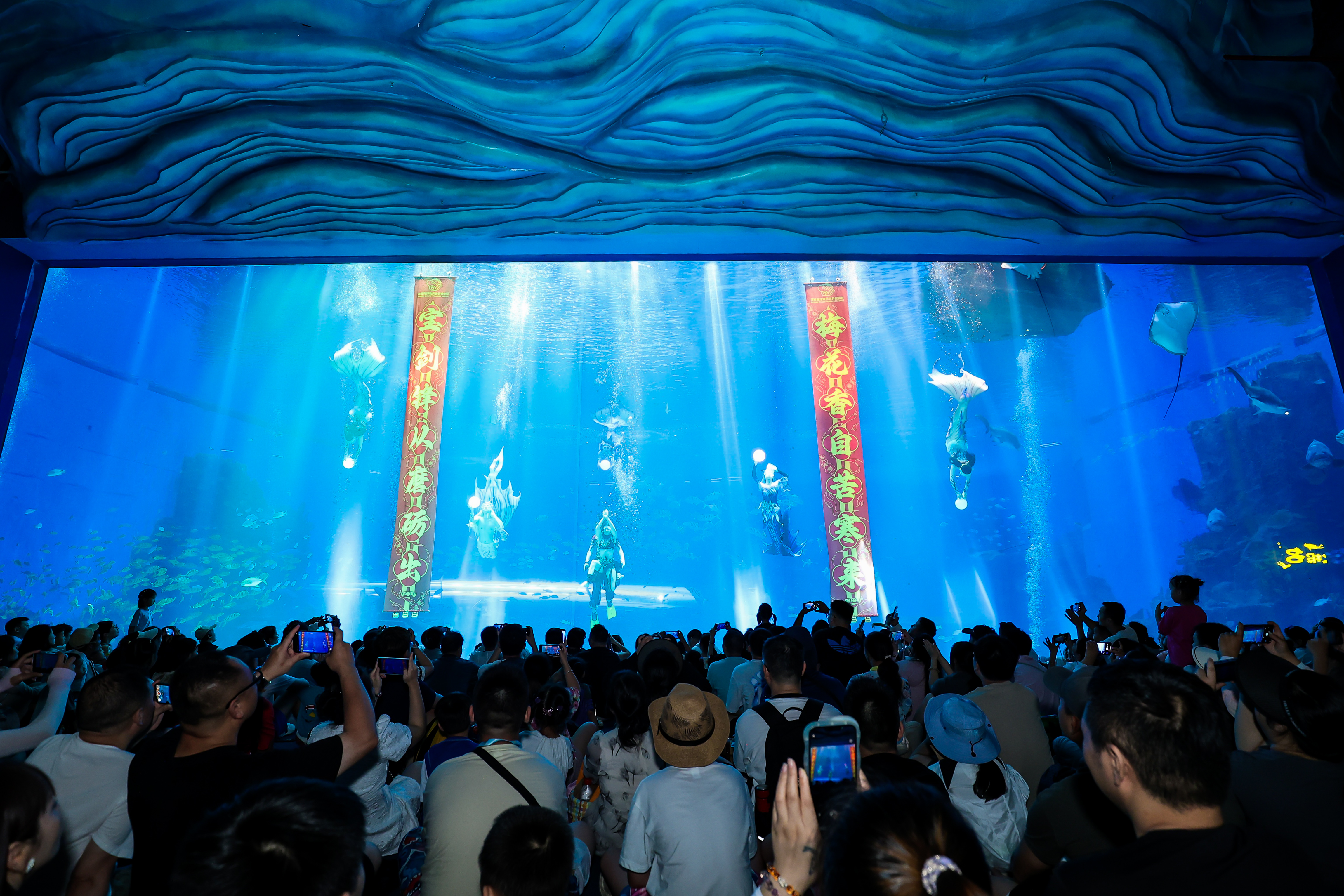 海洋欢乐世界越玩越清凉,越夜越精彩。二十余场演艺全天候高能不断,《哪吒闹海 2.0》等三场水下大秀场场爆满,清凉观演间掌声雷动;日夜两场海洋主题巡游中,湿身派对与童话奇遇随时上演;国际烟花秀天天绽放,续写南海夏夜的璀璨诗篇;明星红人轮番登场,引爆互动狂欢热潮。七大动物场馆化身天然避暑舱,26 + 领航级游乐设备带来瞬时清凉,3W + 海陆空动物家族伴你探秘海洋。南海列车“海上小火车”全新包装“极地专列”和“海洋专列”清凉启航,满载游客穿梭海洋童话世界,更有与海洋动物共眠的奇妙体验等您解锁。