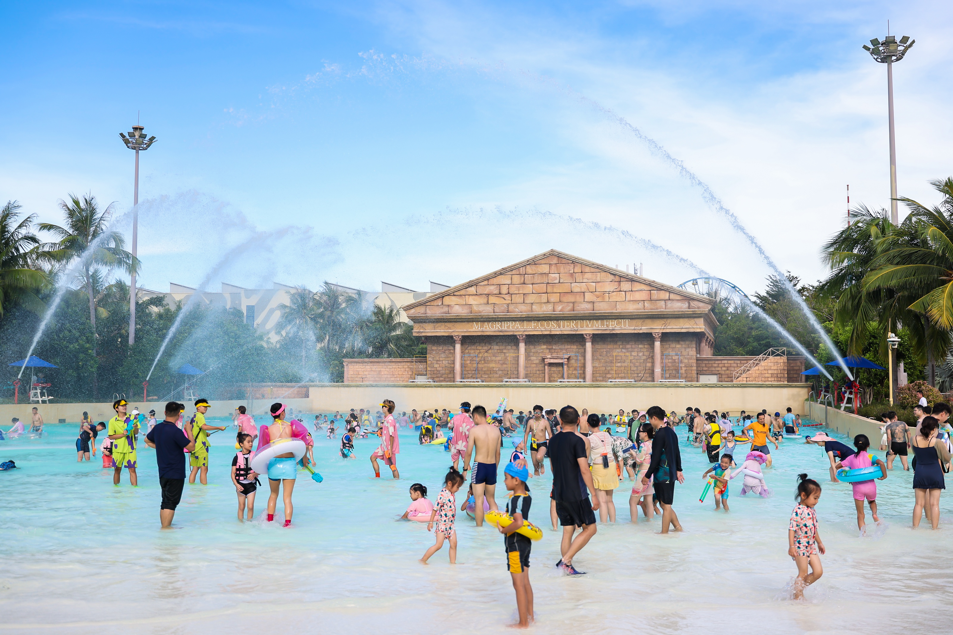 海洋水上乐园打造多维清凉矩阵:日间挑战潮玩争霸塔大喇叭、双神战道等 16 项国际级水上游乐设备,在飞驰中感受冰爽冲击;夜间暴风海神湾化身狂欢主场,与明星红人、超人气 MC&DJ一起炸水花、蹦水迪。德墨特尔城堡、泡沫嘉年华等亲子设施与互动演艺,打造一站式亲子暑期游玩胜地,轻松化解带娃难题。