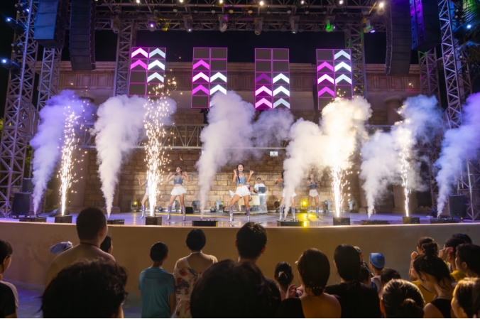 南海之畔的夏夜被欢腾声浪裹挟,国际烟花秀与无人机交织成流动的梦幻星河,南海夏日花火节 2.0 以梦幻四重奏演绎璀璨传奇。七彩烟花如流星划破夜空,无人机编队幻化的“天空之门”等震撼画面,引领游客徜徉宇宙级浪漫;高喷水幕随旋律舞动,构筑沉浸式视听奇观。此外,周周有明星红人空降乐园,每日主题派对不断,游客可近距离参与清凉激战、舞台狂欢与合影互动,在戏水大战与电音派对中释放夏日活力。