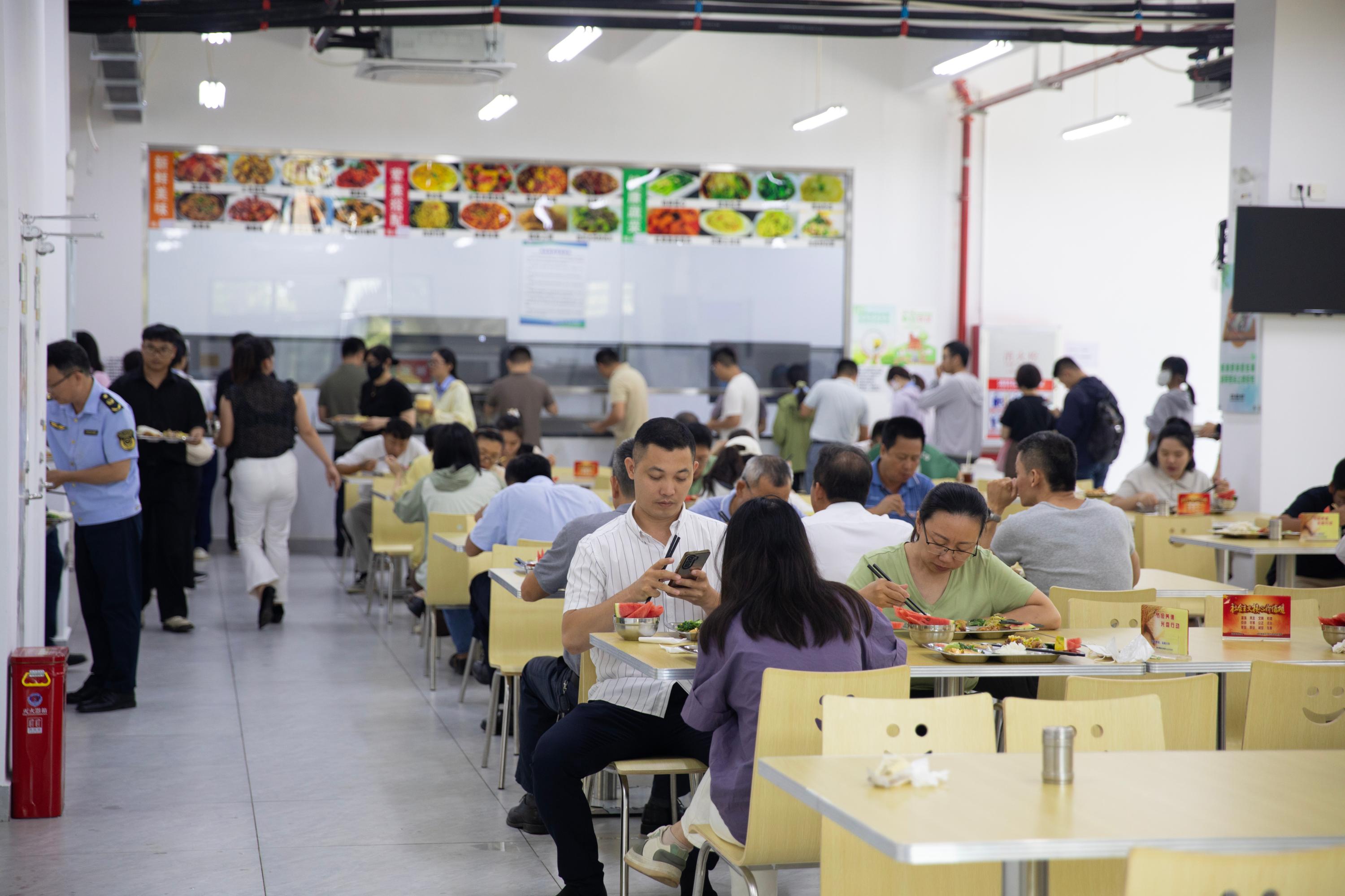 食堂里飘着饭菜的清香,大家三五成群围坐一桌,一边吃着碗里的菜肴,一边唠着家长里短,欢声笑语在空间里此起彼伏。附近公司上班的李女士,下班后总来这里用餐,席间与朋友聊着美妆博主推荐的新品,分享生活点滴。在这方餐桌上,人们卸下平日的忙碌,尽情舒展生活的本真。