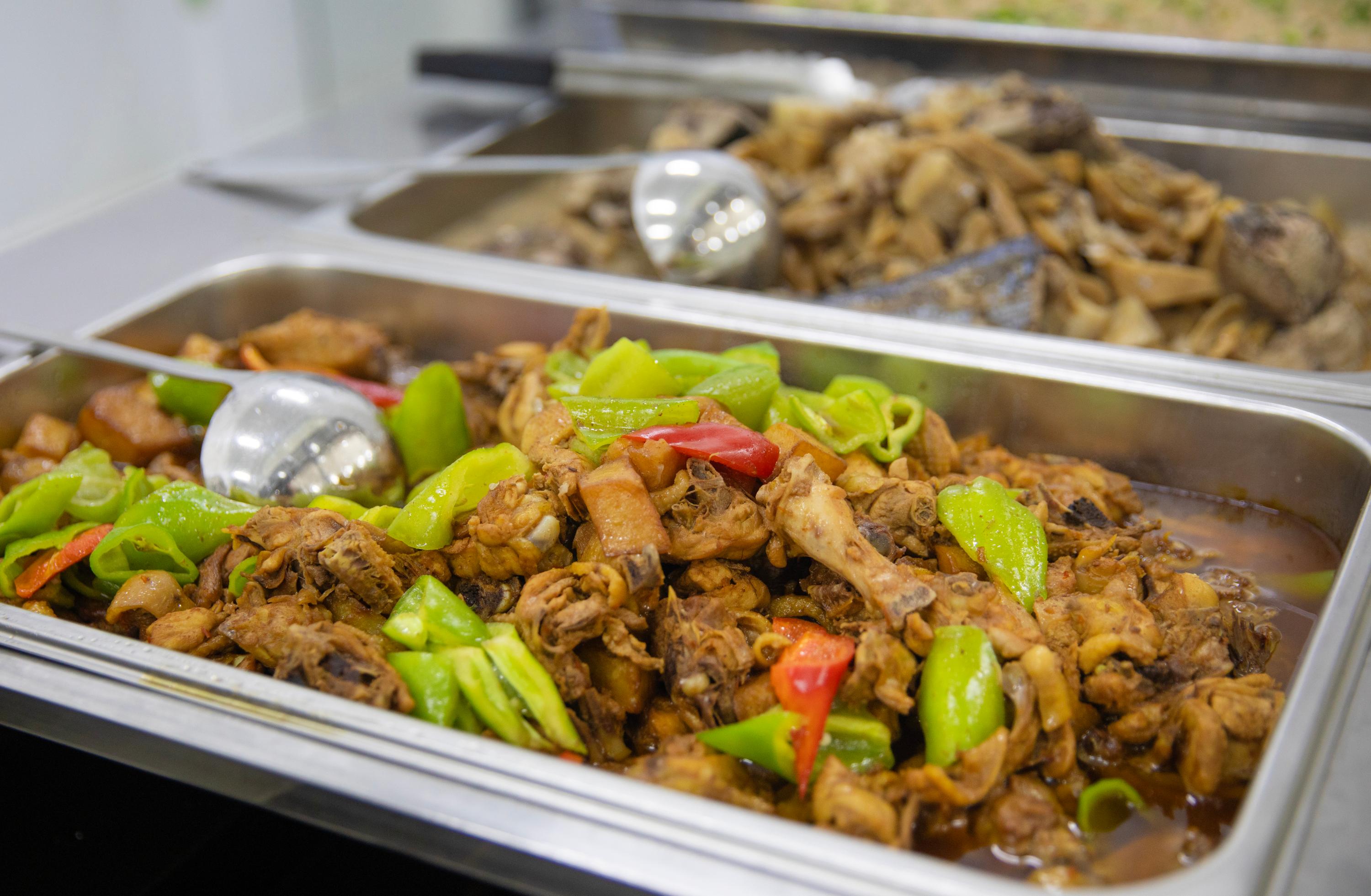 记者了解到,为保障每日食材新鲜安全,食堂工作人员提前一天将食材清单上报陵水菜篮子电子商务有限公司,由该公司供应蔬菜水果、家禽肉类。工作人员会对菜品品相、新鲜度、源头追溯、农药残留检测等严格把关;食堂使用的米、油均从扶贫网站“832 平台”采购,蔬菜、肉类均标有溯源标志。
