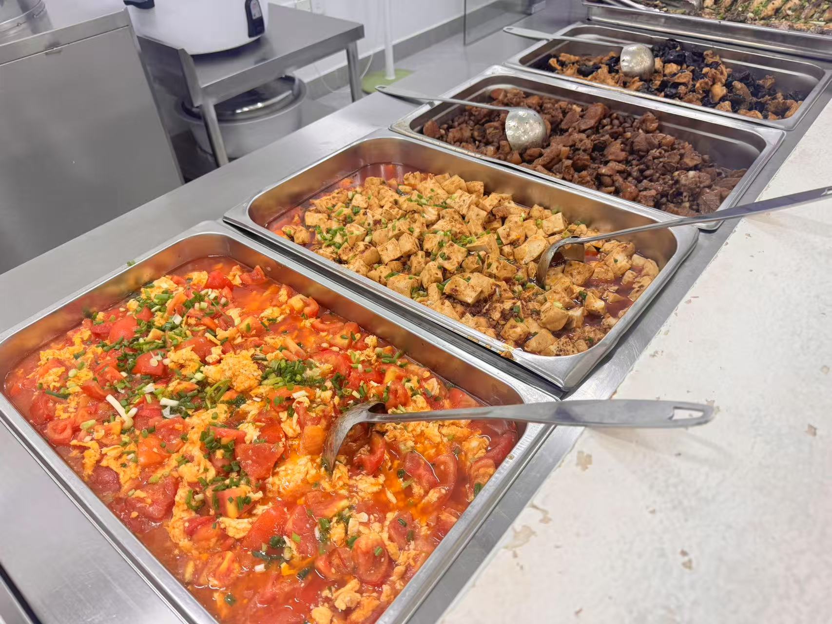 一到饭点,食堂便迎来了社区居民、外来人员、机关和企事业单位上班人员等纷纷在此“打卡”。“食材很新鲜”“味道不错,关键是价格还比较实惠、亲民”“过来很方便,环境也干净舒适……”大家口口相传着在此用餐的感受。