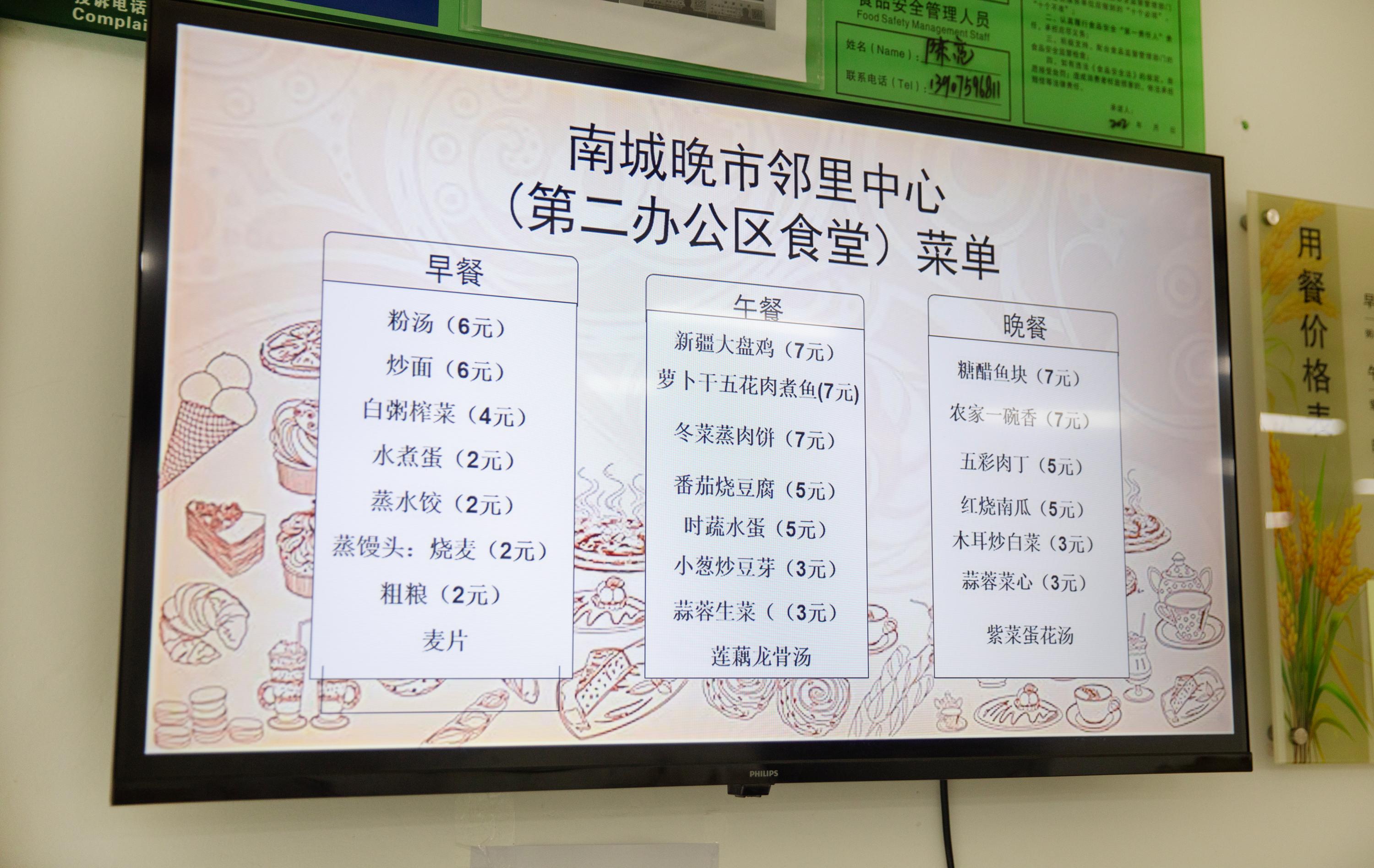 南城晚市邻里中心负责人李若若介绍:“食材运到食堂后,会有专人详细检测品相与质量,合格后由厨房工作人员清洗烹饪。厨房配备充足人手,清洗、翻炒、打菜等环节分工明确、协同配合,既确保了舌尖上的安全,规范操作也为用餐安全增添了多重保障。”