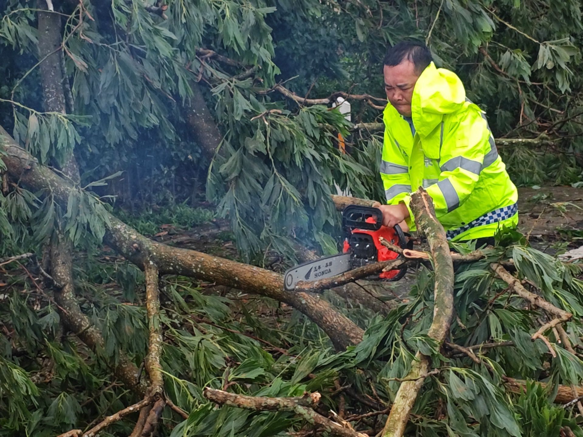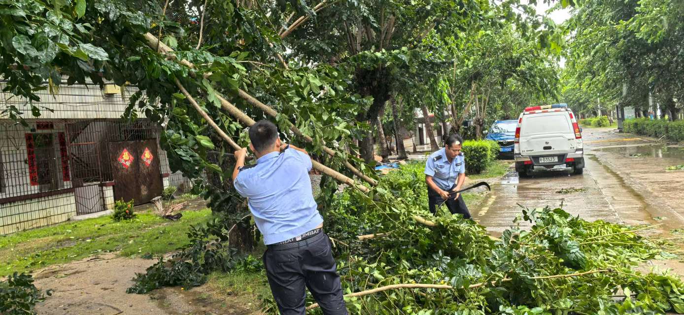 台风期间,各派出所积极对积水严重路段、受损护栏、倒伏树木、掉落电线电缆等安全隐患进行及时排查和先期处置,设立警示标志,协调相关部门快速清理,严防发生次生灾害。同时,交警部门全员上路,始终坚守在路面一线,顶风冒雨指挥交通,在积水路段、塌方路段实施交通管制,引导车辆绕行;及时清理路面障碍,全力保障抢险救援车辆、物资运输车辆安全通行。