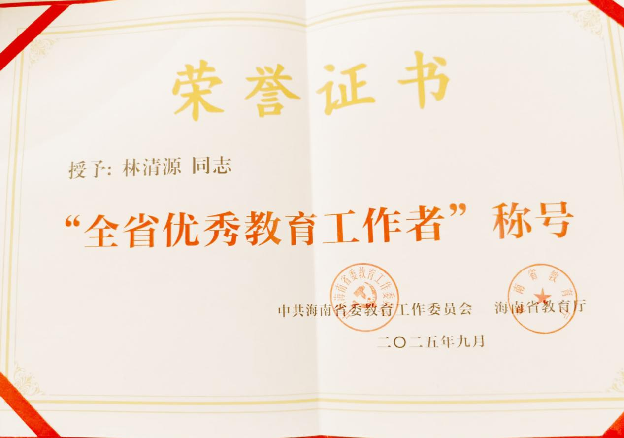2025年,林清源荣获“全省优秀教育工作者”称号。