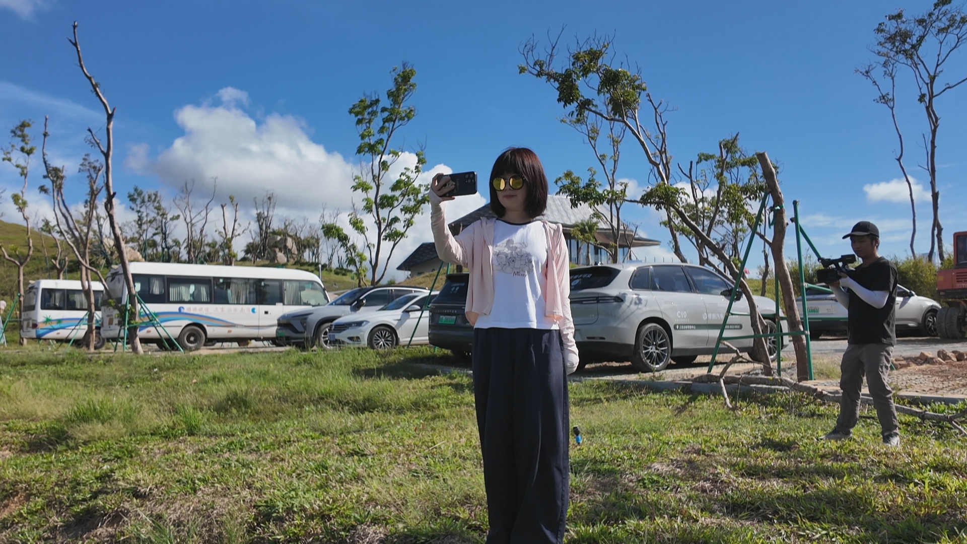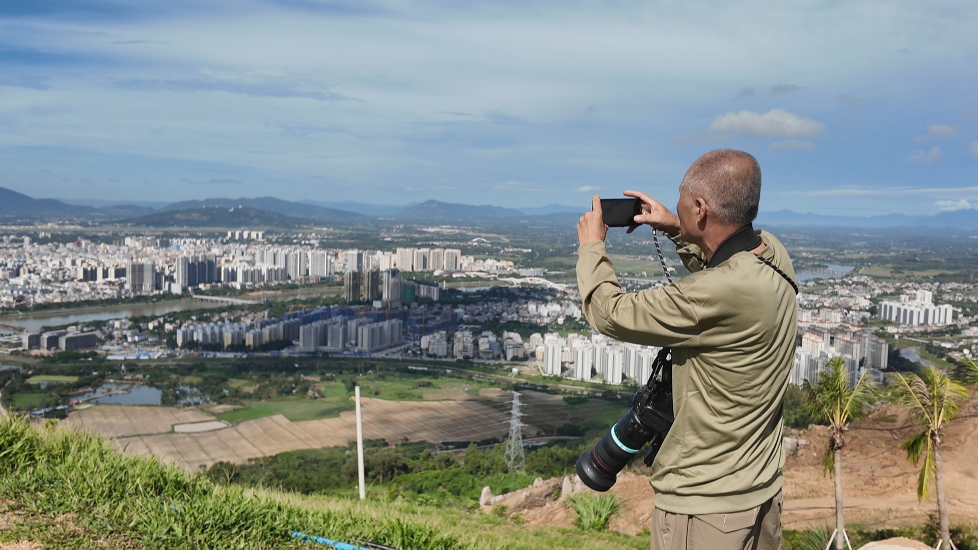 游客黄女士说:“我从广东广州过来,原本是打算去三亚玩的。后来刷到陵水有这样一个活动,加上我本身对摄影比较感兴趣,平时业余时间也会拍一些风光作品,就想着过来体验一下。今天大概五点半的时候我到了山顶,完整地目睹了日出的全过程。今天云比较多,但景色依旧很美——东面是大海,能观赏日出;西面是县城,视野很广阔。整个陵水都特别适合拍照出片,每个地方都有自己的特色,比如大溪岭,在这里既能拍到城市风光,又能拍到海景。”