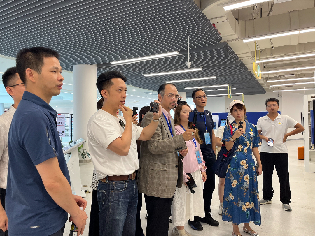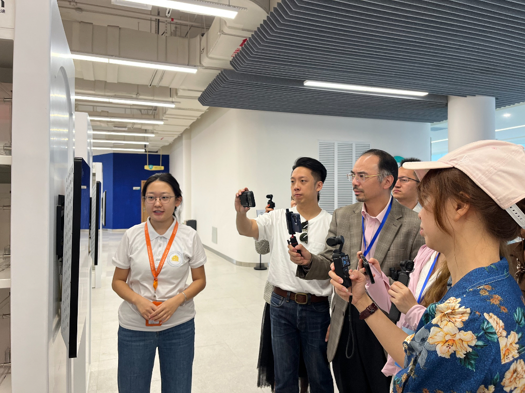 采访团先后走进试验区公共教学楼、图书馆、中国传媒大学海南国际学院,系统了解试验区在教学环境打造与创新成果转化、教科产城深度融合、创新人才培养模式等方面的特色实践和突出亮点。