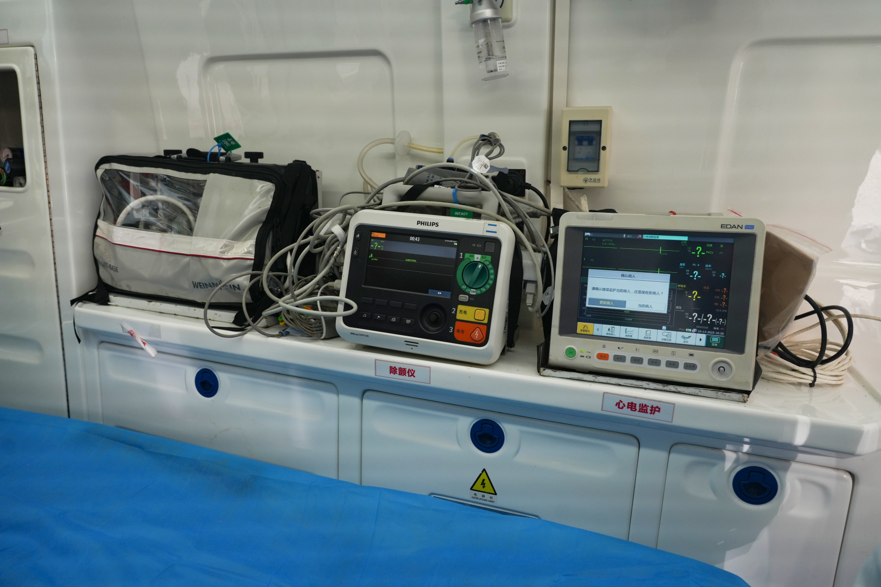 走进陵水新村镇中心卫生院急救站点,一派紧张有序的备勤景象映入眼帘:救护车整齐停放于指定区域,随时处于待命状态;急救医生、护士与司机全员在岗值守,24小时不间断响应突发急救任务。该站点严格实行轮班值守制度,确保“接到指令即行动”,为危急患者争取宝贵救治时间。不仅如此,站点的设备配备更是“硬核”——救护车内,除颤仪、呼吸机、各类急救药品等基层必需救治设备一应俱全,可充分满足常见危急重症患者的现场急救需求。