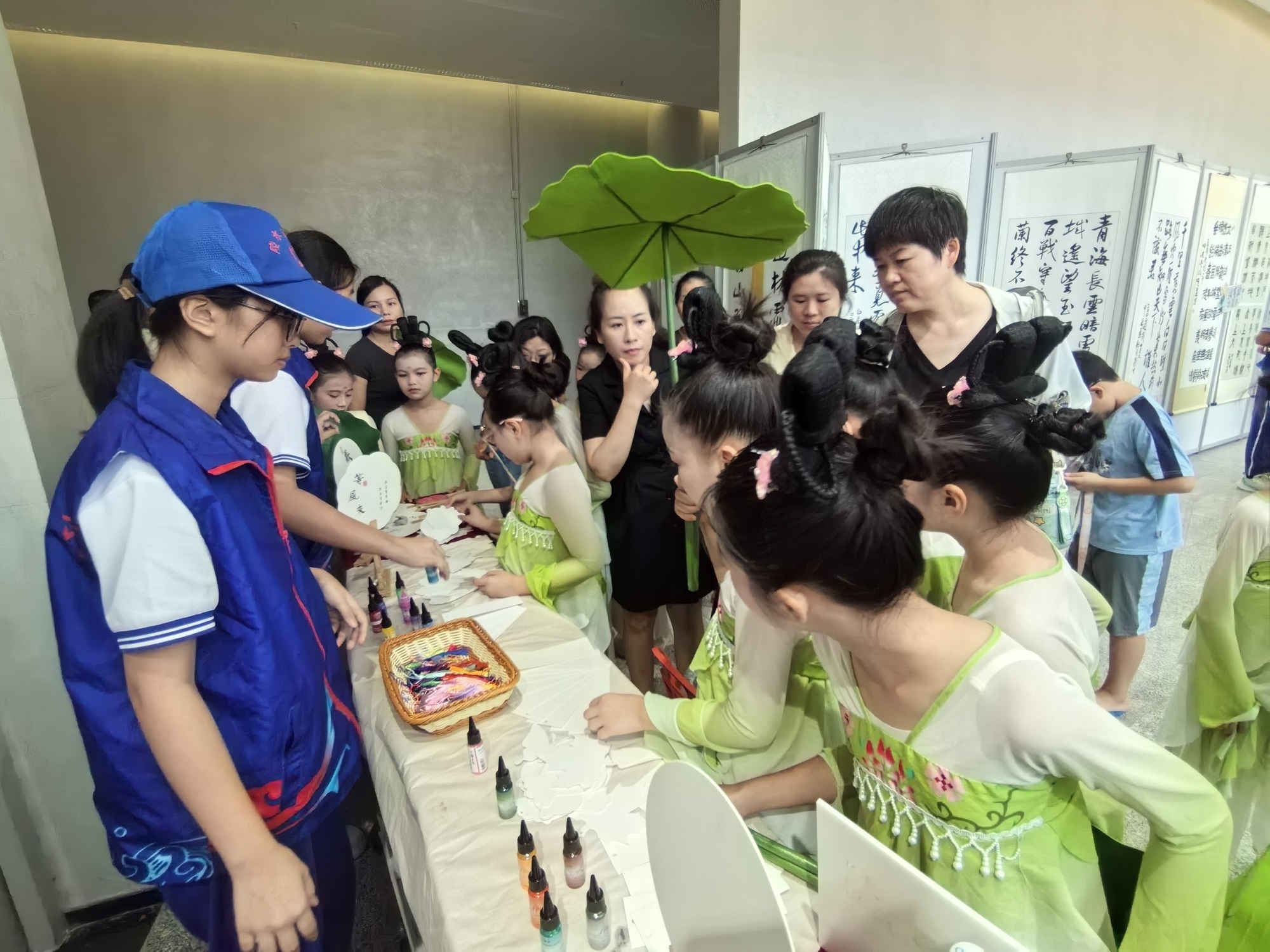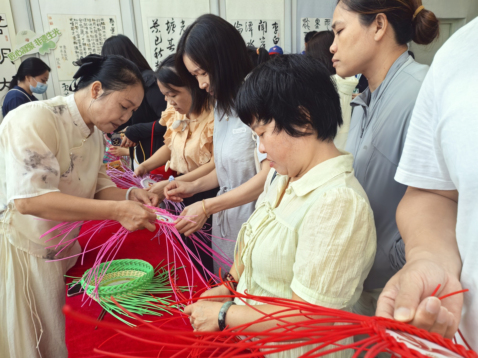 与此同时,社区教育成果展览及手作体验活动也在一楼展厅开展。活动设置了书法、非遗漆扇、竹编相框等互动体验区,让社区居民在亲手制作中感受传统文化的魅力。