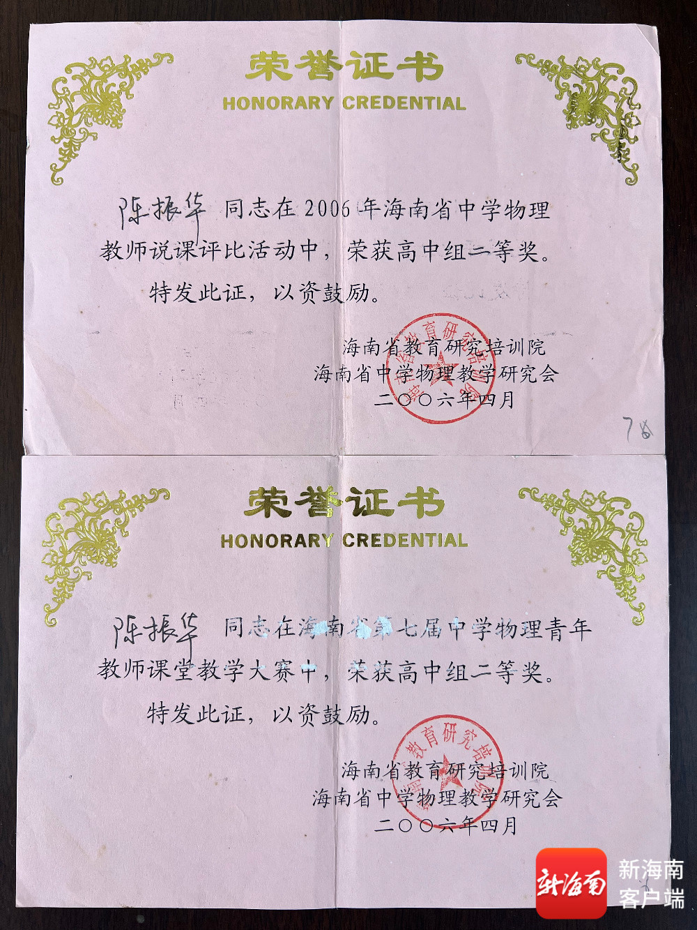 2006年,他代表学校参加海南省中学物理教师说课评比及青年教师课堂教学大赛,与名校同分获奖。这份荣誉,不仅是对他教学能力的认可,更坚定了他深耕一线、服务家乡教育的信念。即便有机会调往名校或进入培训机构,他始终选择留下:“我的根在这里,我的学生在这里。”
