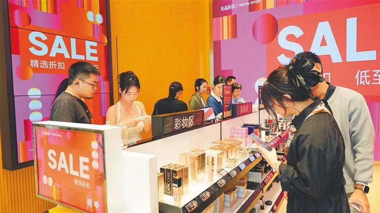 11月1日,海口国际免税城内,众多旅客在选购免税商品。海南日报全媒体记者张茂 摄