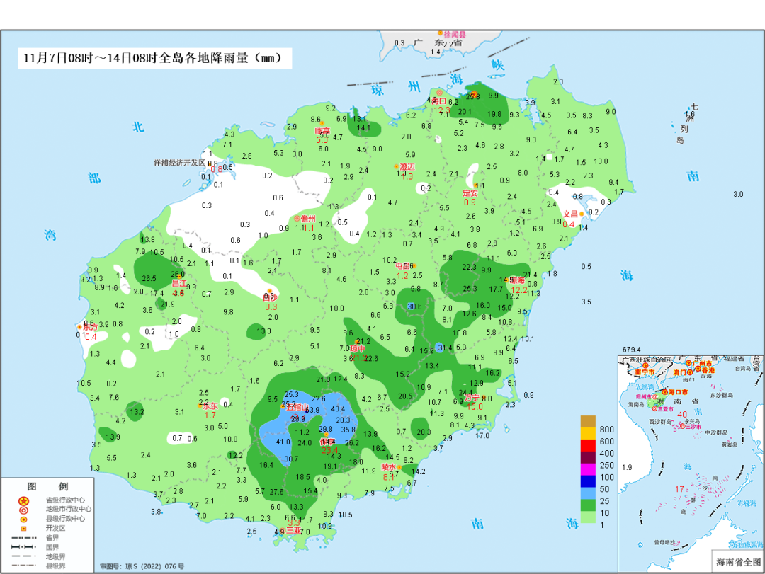 陆地方面: 11月15日~16日,受东到东北气流影响,海南全岛以多云间阴天为主,其中东北半部地区有小雨、局地中雨;最高气温五指山以北地区24~27℃,五指山以南地区28~30℃;最低气温中部山区和西部内陆13~16℃,其余地区17~20℃。 17日~21日,受较强冷空气影响,海南全岛多云间阴天,其中17日~19日五指山以北地区有小雨;气温下降,最高气温五指山以北地区可降至18~21℃,五指山以南地区22~25℃,最低气温中部山区和西部内陆11~14℃,其余地区15~18℃。 海洋方面: 11月15日~17日上半夜,北部湾海面、海南岛西部海面和琼州海峡,风力5~6级、阵风7~8级;海南岛东部和南部海面、西沙和中沙群岛附近海面,风力6~7级、阵风8级;南沙群岛附近海面,风力5~6级、阵风7级。 17日下半夜~18日,琼州海峡,风力6~7级、阵风8~9级;北部湾海面,海南岛东部、西部和南部海面,西沙和中沙群岛附近海面,风力7~8级、阵风9~10级;南沙群岛附近海面,风力5级、阵风6~7级。 19日~21日,海南岛东部和南部海面、西沙和中沙群岛附近海面,风力7~8级、阵风9~10级,21日减弱为6~7级、阵风8~9级;北部湾海面、海南岛西部海面和琼州海峡,风力6~7级、阵风8级;南沙群岛附近海面,风力5级、阵风6~7级。 海南省气象部门提醒 未来一周受冷空气持续影响,气温下降明显,五指山以北地区最高气温可降至18~21℃,中部山区和西部内陆最低气温11~14℃,请户外活动人员和特殊人群注意天气变化,适时添衣保暖,预防感冒和呼吸道疾病。 受较强冷空气影响,海南省大部分海域将出现大风天气,请海上作业船只注意采取避风措施;17日下半夜~18日琼州海峡有8~9级阵风,将有部分时段停航,请相关部门提前做好通航安排。 瓜菜种植需做好覆膜保暖措施,并提前施用叶面肥以提高植株抗性;荔枝果园需抓住干冷天气做好控梢促花工作。 未来一周,海南岛森林火险气象等级以1~2级为主,临高、澄迈、儋州、东方、乐东、保亭、陵水和三亚等市县部分地区、部分时段森林火险气象等级可达3级(可燃)。请相关部门加强森林防火巡检,做好森林防火等防范工作。