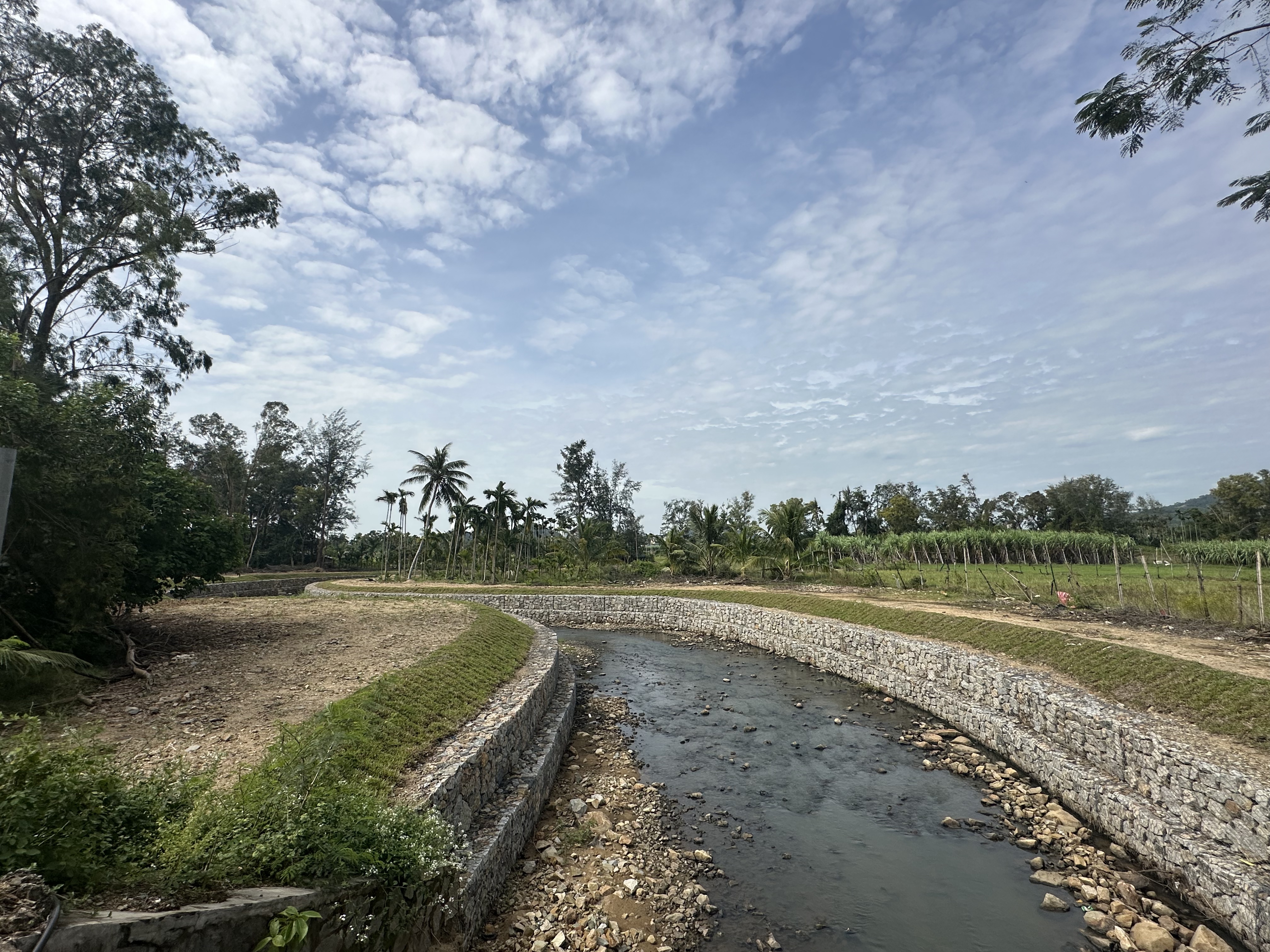 灌溉之外,防洪排涝能力也同步提升。在英州镇红鞋村,一条拓宽至约8米的排涝沟,守护着5400多亩农田。曾经的土沟摇身变为格宾挡墙结构,既为植物留出生长空间,又实现了水土的自然交换,植被自由生长,减少了水泥对生态的影响,真正实现了工程结构与自然环境的和谐统一。