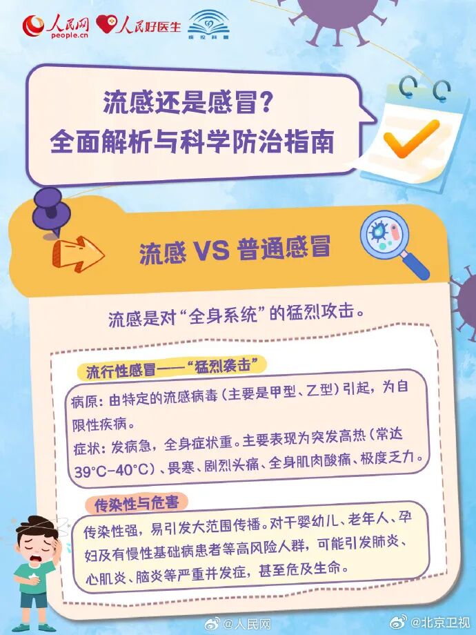 流感和普通感冒有何不同?如何防治流感?详戳↓↓