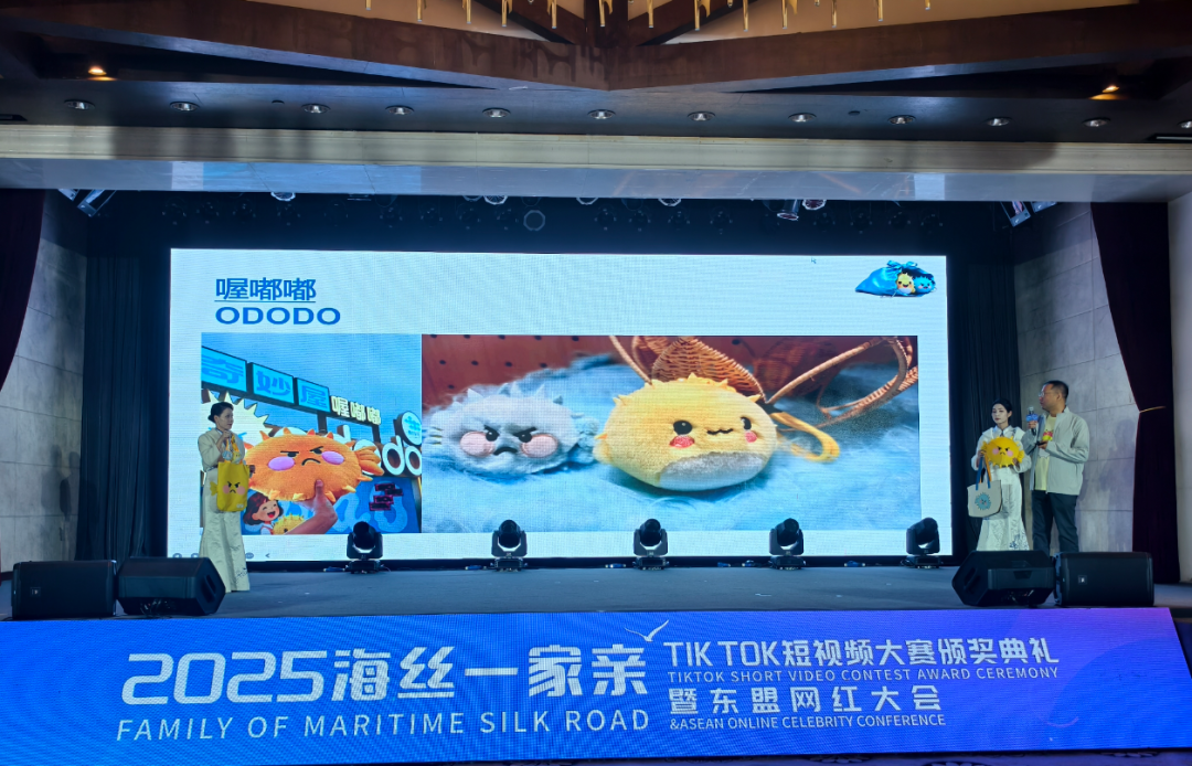 在 “陵水好礼” 精心布置的展位上,IP潮玩、传统工艺、日用文创系列等特色产品琳琅满目,每一件都承载着陵水的山海风情与人文温度。 憨态可掬的气鼓鱼“喔嘟嘟”被网红达人们争相把玩,冰箱贴、捏捏乐等爆款单品凭借萌趣造型圈粉无数;兼具实用性与时尚感的 “海风闲闲” 岛服,让网红达人们忍不住试穿打卡,纷纷称赞 “把陵水风景穿在身上,既好看又实用”。现场,网红达人们或手持玩偶互动,或身着岛服拍摄创意短片,用多元视角记录“陵水好礼”的独特魅力,让展位成为大会最具人气的 “文化交流打卡点”。