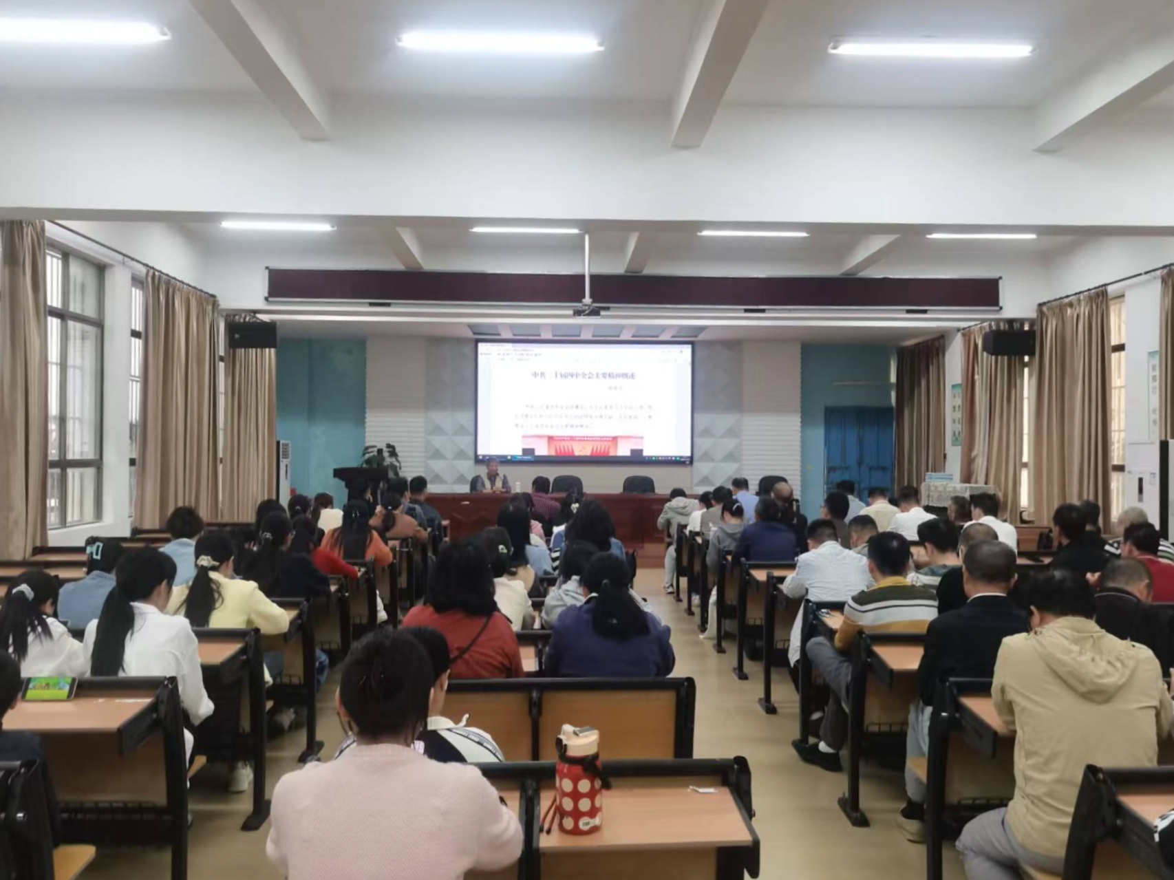讲座聚焦“十五五”时期教育发展主要目标,重点解析了“一体推进教育科技人才发展”的战略内涵,结合珊瑚宫殿社区老年教育学校获评“全国终身学习品牌项目”的实践案例,为英州中学教职员工提供了将政策精神转化为教育教学动能的具体路径。参会教职员工认真聆听、踊跃交流,纷纷表示通过本次跨领域学习,既深化了对二十届四中全会精神的理解,更明晰了“十五五”时期教育工作者的责任使命,为今后在教学中融入家国情怀与时代担当提供了有力指引。
