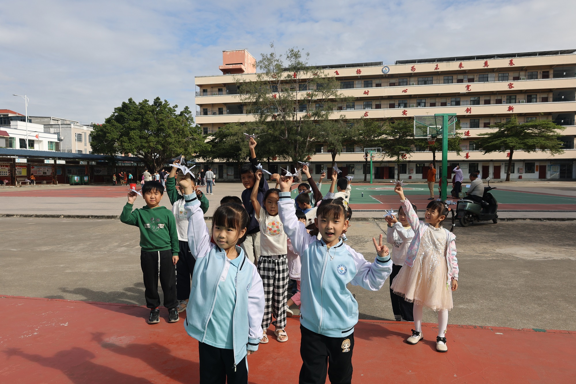 活动现场,同学们化身“小小航天工程师”,专注投入仿真纸飞机制作。在40分钟的实践时间里,大家仅凭折叠技巧打造专属“飞行器”,不借助胶粘、裁剪等工具,充分发挥想象力与动手能力。完成制作后,同学们将纸飞机投向模拟“航母甲板”的降落区,在一次次投掷与调整中,直观感受飞行轨迹与落点的关联,潜移默化中了解空气动力学基础原理。