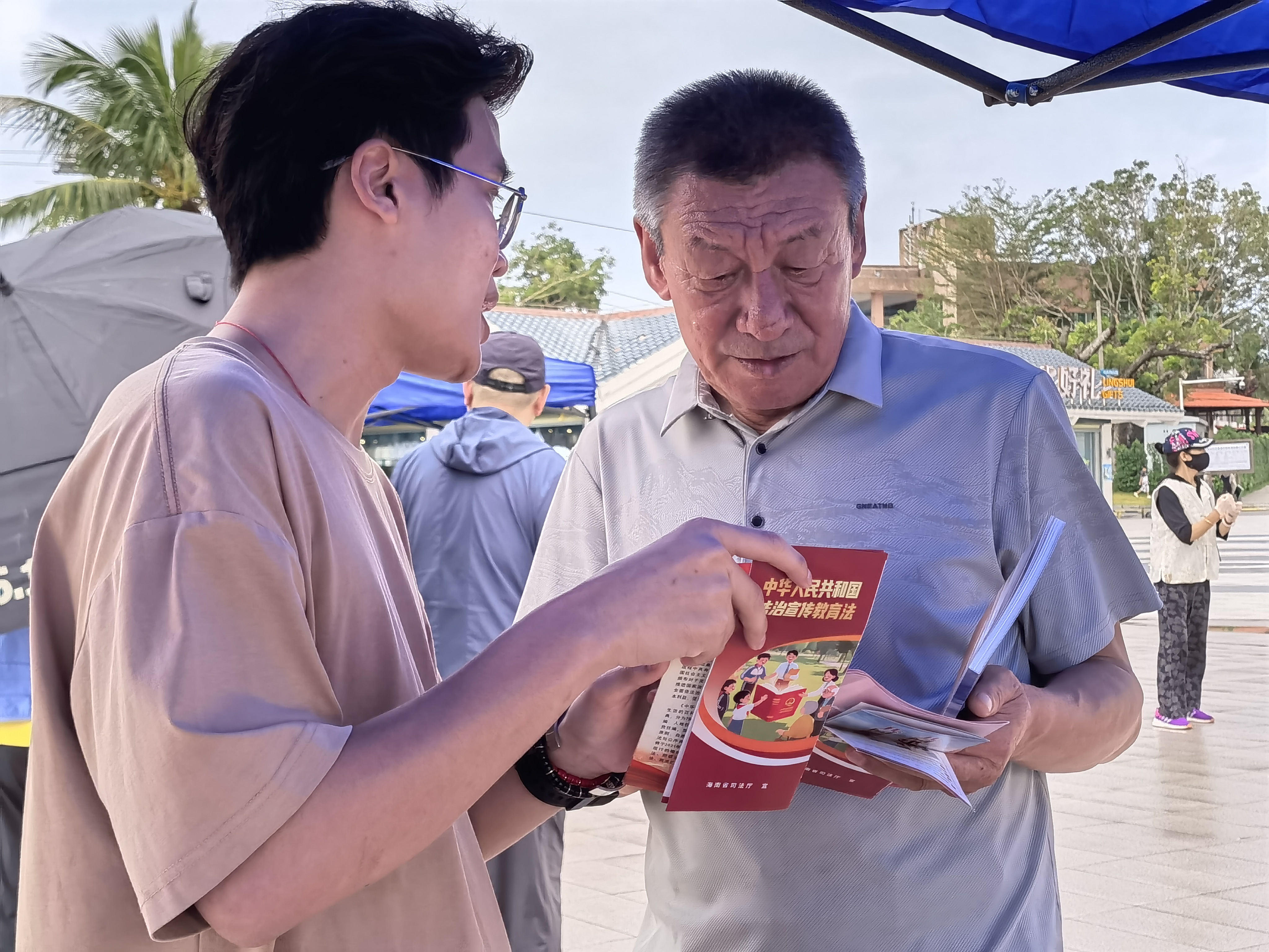 在法治宣传展板区,一块块精心布设的展板如同“流动的法治课堂”,宪法的核心要义、法治宣传教育法、海南自由贸易港法以及民法典中与群众生活密切相关的婚姻家庭、财产权益、邻里纠纷等民生关切内容,通过图文并茂、案例结合的形式,将抽象的法律条文转化为通俗易懂的生活指引。