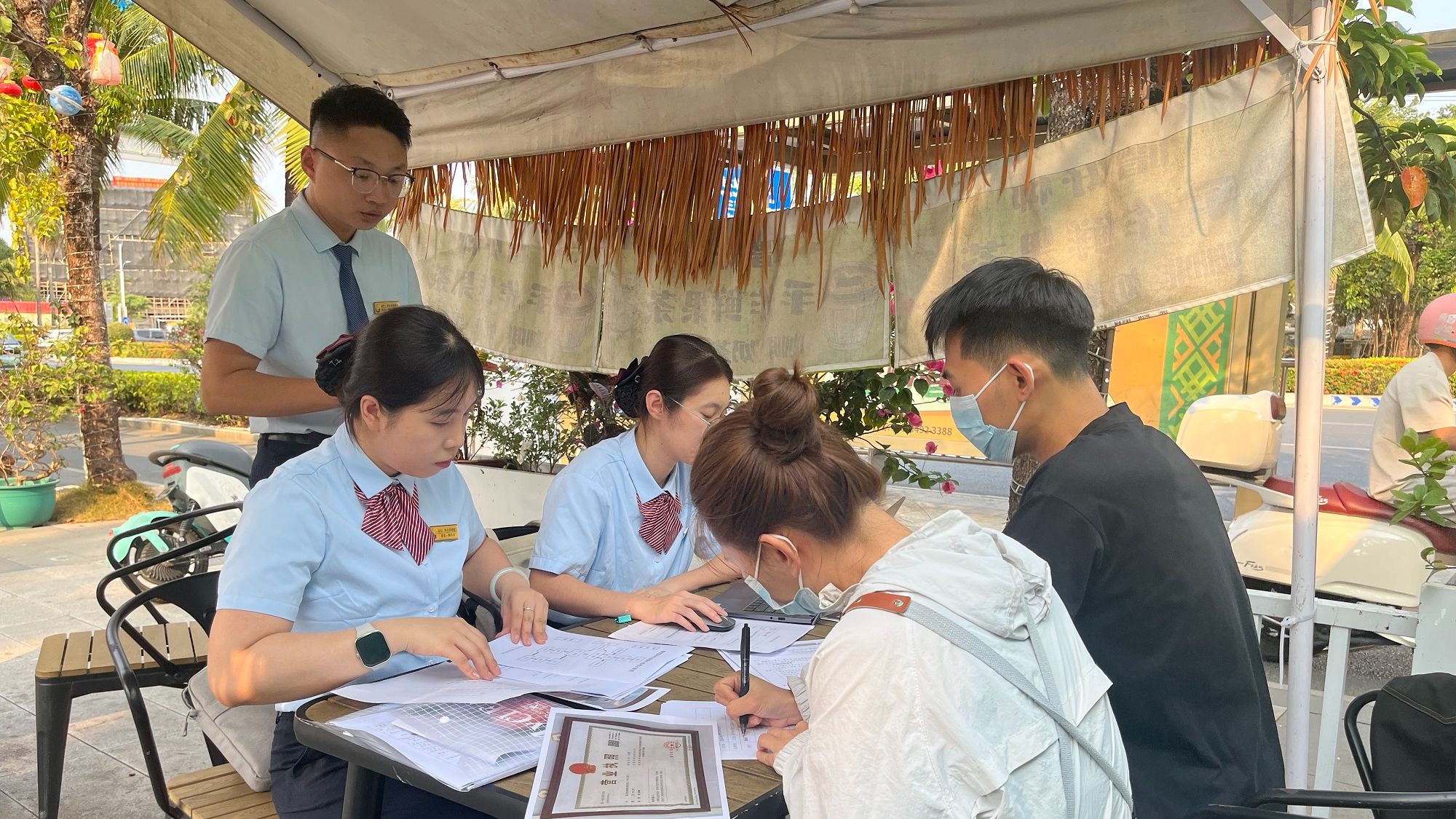 ▲广西“三月三”期间,来自全国的游客与梦呜苗寨村民一起庆祝节日。柳州市民宗委供图