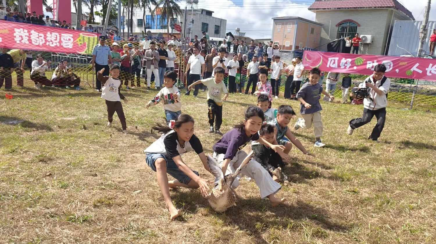 活动还举行了“陵水大棚西瓜产业协会”揭牌仪式。在趣味互动环节,“瓜王PK赛”评选出优质西瓜;紧张刺激的“吃瓜比赛”引来阵阵欢笑;“签约仪式”上,主办方与采购商达成产销合作意向;“发车仪式”中,满载西瓜的货车整齐出发,驶向广阔市场。此外,“西瓜排球赛”“蒙眼抓鸭抓猪”等乡土趣味活动,将节日氛围推向高潮。
