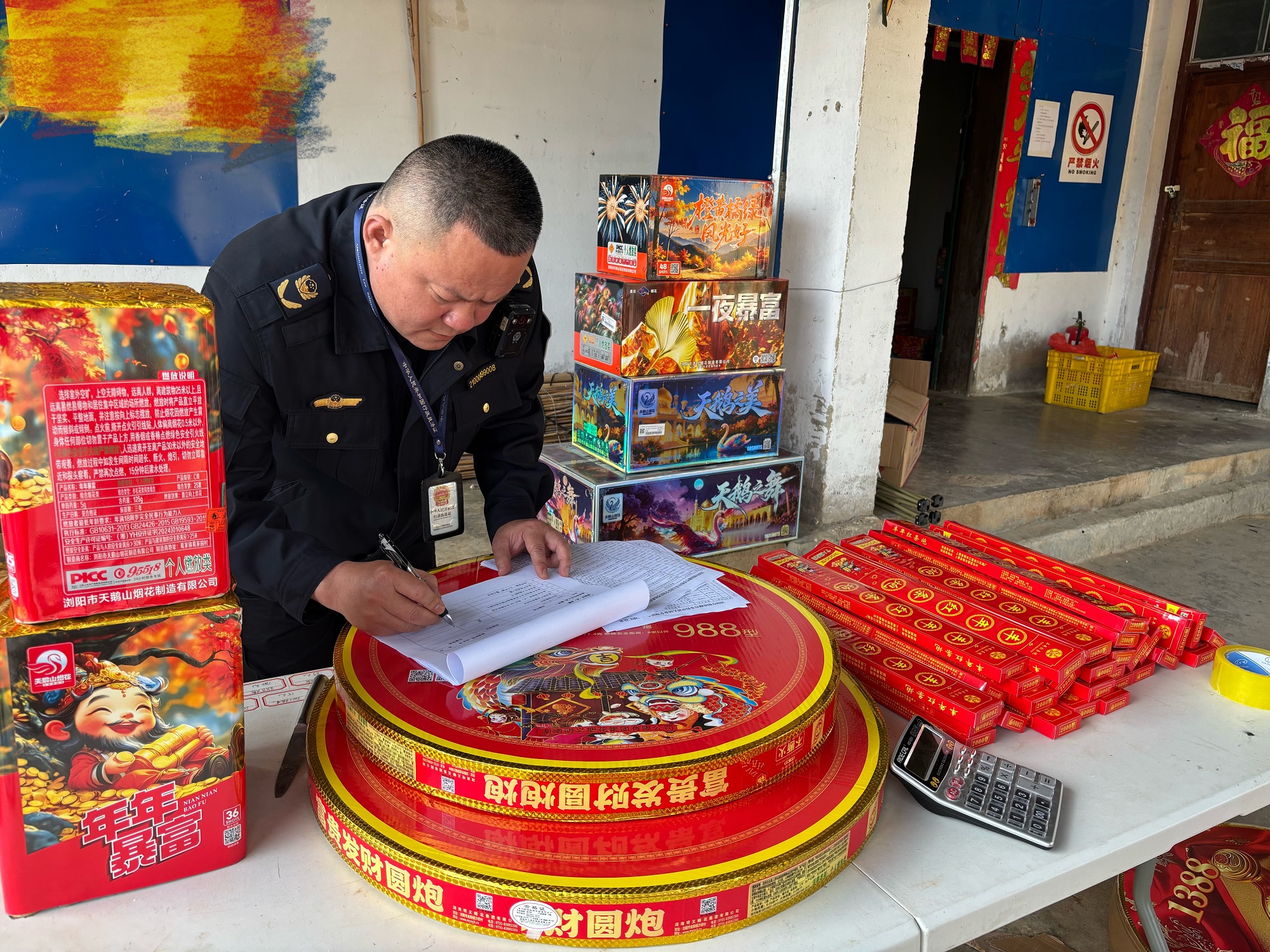 执法人员以“五个严禁”和“三个务必”为核心标准,对本号镇辖区内的烟花爆竹零售店开展安全检查。认真逐项对标对表,重点核查是否存在“下店上宅”违规住人现象,查看库存量是否超量储存,检查产品是否按照规定摆放、严禁将产品摆放至店外。每到一处,执法人员都详细查阅了出入库台账,对在售产品包装、进货渠道进行查验。