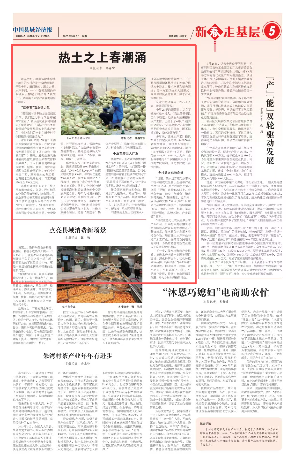 “现在国内很多地方还是低温天气,我们这儿平均气温却在25℃左右。”陵水县农业农村局副局长蔡锋介绍,“这样的气候条件非常适合发展热带农业和水产育苗,也让我们的产业在新春时节依旧能保持旺盛活力。”